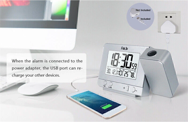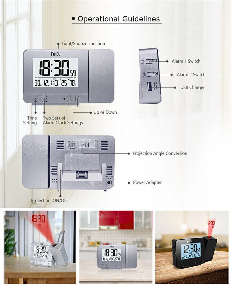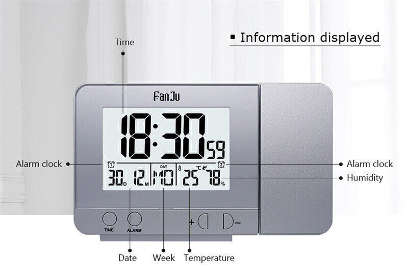 You Might Also Like Waterproof Digital Sports Watch Military Tactical LED Backlight Wristwatch Men 9.34 USD 10.99 USD Free shipping 15% off Black Resin Watch Strap For CASIO Sport Diving Watch Rubber Replacement Band 7.22 USD 8.49 USD Free shipping 15% off Replacement 6 Channel USB Receiver Dongle For Logitech Unifying Keyboard/Mouse 11.3 USD 13.29 USD Free shipping 15% off Replacement USB Receiver Dongle For Logitech M950 M310 M525 M720 Keyboard 8.24 USD 9.69 USD Free shipping 15% off USB Wireless Bluetooth Receiver 3.5mm AUX Audio Stereo Music Home Car Adapter 8.07 USD 9.49 USD Free shipping 15% off 18MM Watchband For Casio W-800H F-91 W-218H Watch Band Replacement Black Strap 7.64 USD 8.99 USD Free shipping 15% off 1 PCS 7S26A Movement Automatic Rotor Oscillating Weight For Seiko NH35 NH36 11.04 USD 12.99 USD Free shipping 15% off 4 Colors For PSP3000 Shell Case Replacement Full Housing Cover With Buttons 17.74 USD 20.87 USD Free shipping 15% off 12V Digital Thermostat Temperature Control Switch Sensor Module Board 8.66 USD 10.19 USD Free shipping 15% off For NZXT Aer RGB InOut Cable Input Cable Connection Cable Case Fan Adapter Cable 7.3 USD 8.59 USD Free shipping 15% off Touch Screen Pen Stylus Drawing Universal For iPhone iPad Samsung Tablet Phone 8.49 USD 9.99 USD Free shipping 15% off 3.0-7.0mm Assorted Watch Crown Head Upgrade Parts Repair Tools & Kits Watchmaker 12.32 USD 14.49 USD Free shipping 15% off Product Description If you have any questions, please contact customer service first, do not open disputes easily, thank you! Product Features: (1) Temperature and time projection and on/off button; (2) Dual alarm clock with snooze function; (3) 12/24 hour system time; (4) The calendar has 7 optional languages (English, German, Italian, French, Spanish, Dutch and Danish); 5) Indoor temperature and humidity, alternating in degrees Celsius or Fahrenheit; (6) 1 USB charger, convenient for charging electronic devices; (7) The projection angle can be changed; (8) Small, simple design and large digital display make it easy to read all information from all angles. Power supply: 2 aaa batteries (not included) or USB power cord (included). Product Description: Automatic snooze function: Follow the steps below to turn on the automatic snooze function. When the alarm sounds, touch the "light/snooze" button to turn on the snooze function. Then the snooze function is activated or flashes on the icon on the screen. This action will move the alarm back in 5 minutes, and the alarm will be reset at that moment. Press any button to stop the snooze function. F. yi: If one alarm is delayed during this process and another alarm sounds, the snooze function of the first alarm will be automatically stopped. Backlight: At any time, touching the "light up/snooze" button will turn on the backlight for 8 seconds. If you use a USB cable, the product backlight will have 4 brightness modes, low and medium light output, each time you tap it to switch to one mode. And it can stay on all the time. Charging function: In the case of using a usb cable, the mobile phone or pda can be charged through the usb plug on the left side of the product. Projection function: The projection lamp on the right side of the product can project the current time and clock temperature on the wall or roof to watch the night time. If the projection direction is not correct, please press the ldquo middle direction behind the rdquo button on the remote control to switch the screen direction . When using the USB data cable, the projection will always work. You can choose to turn on or not turn on the projection lamp through the power switch on the back of the product. When powered by battery, you can also use this switch to select whether the projection lamp and the backlight are turned on at the same time. Package Contents: 1*Projection alarm clock 1*USB power cord 1*User Manual Payment Shipping Contact Us We accept paypal payments and all payments authorized by eBay. 1.We ship to your eBay or Paypal address. Please make sure your eBay and Paypal address is correct before you pay. 2.Items will be shipped within 1-2 business day when we received payment. 3.Delivery time depends on destination and other factors We strive for 100% customer satisfaction! Postive Feedback is very important to us. If you have any questions, please feel free to contact us via "Ask seller a question" , we will reply your email within 24 Working hours. Payment We accept paypal payments and all payments authorized by eBay. Shipping 1.We ship to your eBay or Paypal address. Please make sure your eBay and Paypal address is correct before you pay. 2.Items will be shipped within 1-2 business day when we received payment. 3.Delivery time depends on destination and other factors Contact Us We strive for 100% customer satisfaction! Postive Feedback is very important to us. If you have any questions, please feel free to contact us via "Ask seller a question" , we will reply your email within 24 Working hours. powered by
