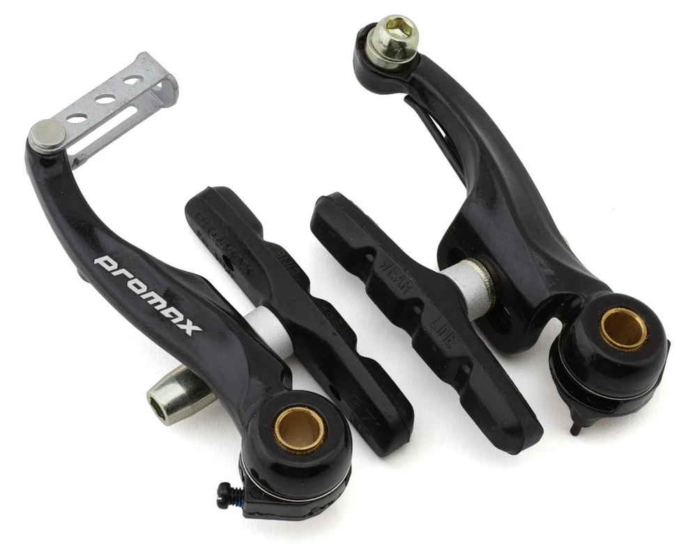 Promax MV-85 Mini V-Brakes Description: The Promax MV-85 Mini V-Brakes is encompass forged aluminum alloy arms with an anodized finish, providing light weight and reliable braking performance. This kit includes arms, pads, brake noodle, overcoat, and mounting hardware. Specifications: Brake Type: V-Brake Arms: Forged aluminum Brake Pads: Black Arm Lengths: 85mm Color: Black Weight: 5.5oz (156g) Want to pair these up with some different pads? Check out our wide selection of brake pads here About Us | View Store