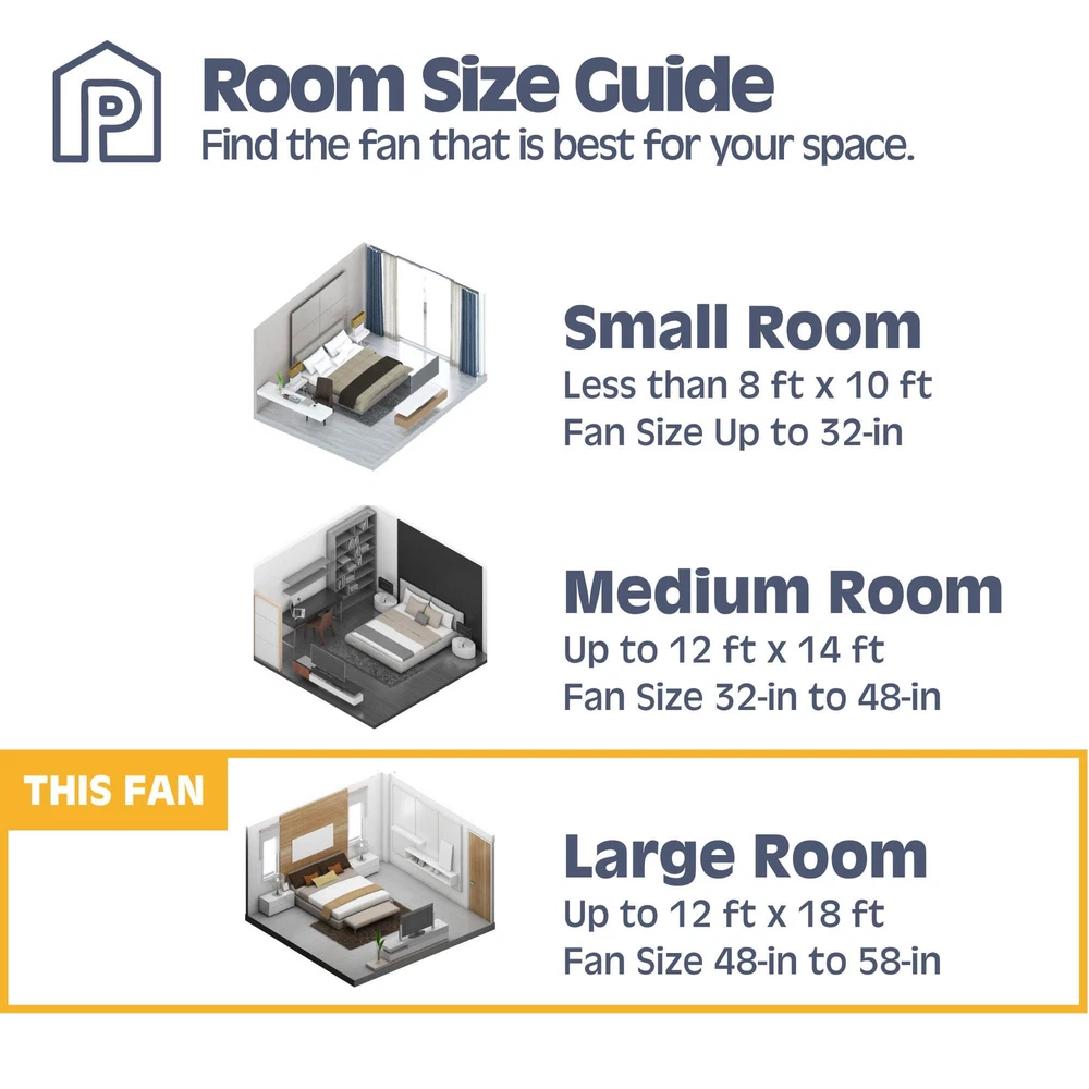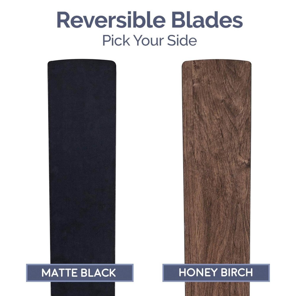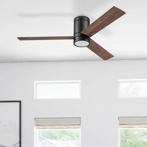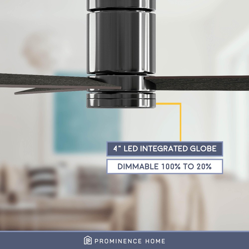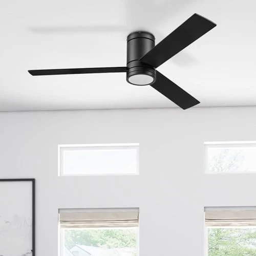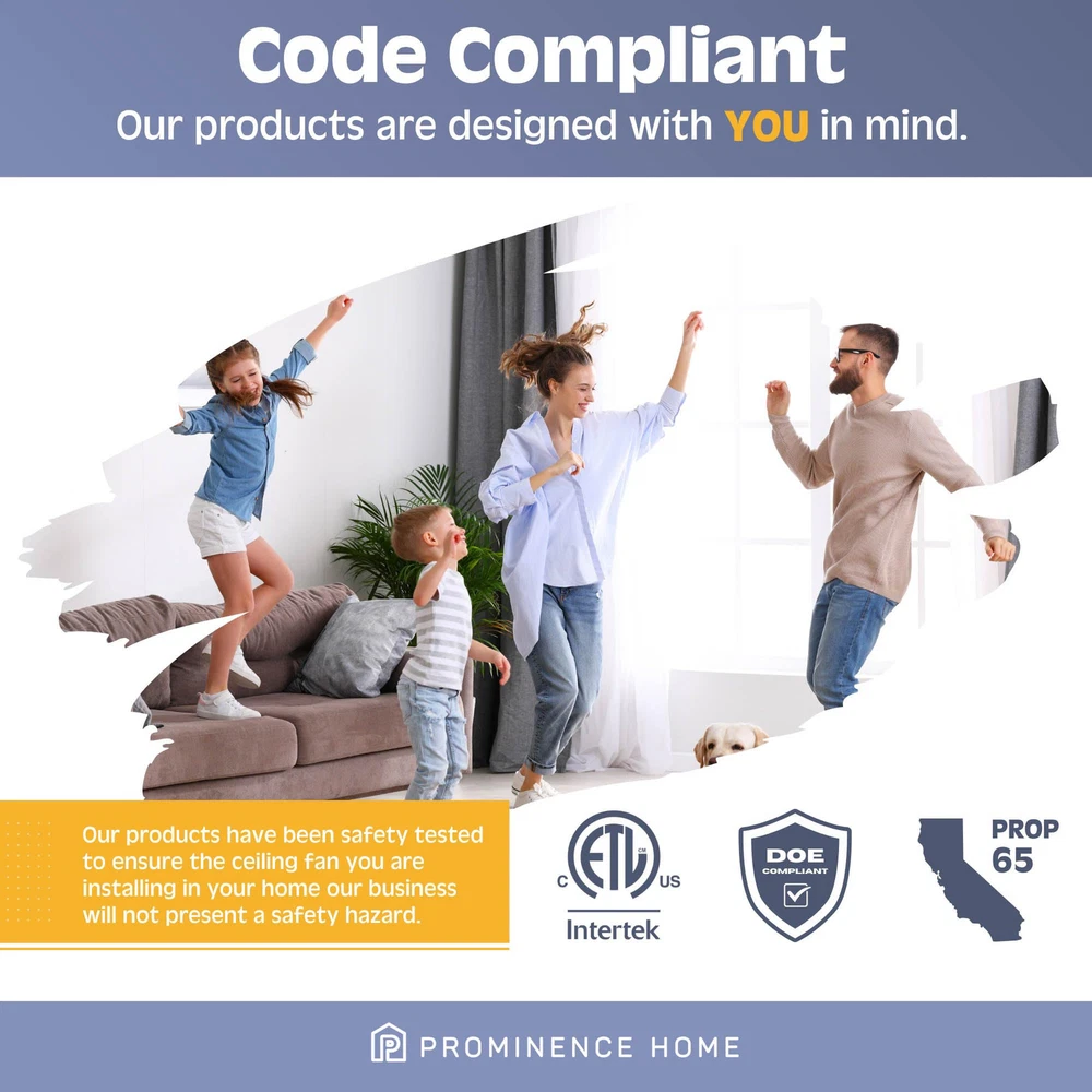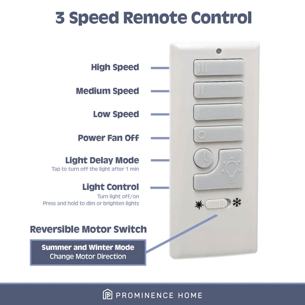 The Espy contemporary low-profile ceiling fan with light combines stylish details with modern influences for a truly inspiring fixture for your home. Its sleek body and lightly frosted glass shade with dimmable LED lighting accompany an innovative 3-blade design that provides adjustable, energy-efficient airflow. Control your Prominence Home dry rated flush mount ceiling fan with lights with a touch of a button with our easy-to-use ceiling fan remote control. For year-round comfort, adjust the convenient reversible airflow switch on the remote to change the direction of this modern ceiling fan with light. During summer, this ceiling fan with remote provides a cooling effect, and throughout winter, our strong fan can reverse to spread warm air, helping reduce energy costs. This 52-inch ceiling fan with light and remote blends with many decor styles. When paired with your decor, it can transform into a mid-century modern ceiling fan, farmhouse ceiling fan, or the industrial ceiling fan with light you've been seeking. The 4-inch LED light board provides 1400 lumens, 18.5 watts, and 3000k color temperature. Whether you need room fans for bedrooms, a home office fan, or living room ceiling fan, this birch and black ceiling fan with light has you covered. Efficiently Cool Large, Indoor Rooms: This 62 inch indoor fan is ideal for indoor spaces larger than 400 sq. ft., such as living rooms, master bedrooms, offices, and studios; In winter, reverse this fan's direction to circulate warm air on low speed Remote Control Ceiling Fan with Light: Select fan light, speed, or features like Home Shield or Walk Away Delay from anywhere with our remote (batteries included), or store in its sleek wall dock; LED board is energy-efficient, longer lasting, & dimmable Stylish, Modern Design: This modern ceiling fan with light has 8 sleek dual-finish blades for incredible air flow and 3 quiet fan speeds; 2 contemporary wood finish options, Dark Elm and Rough Pine, allow for easy décor updates as your style changes Dual-Mount Hanging Options: This innovative large ceiling fan provides 2 hanging options; The standard option offers a 4-inch downrod (included); An angle option allows for hanging on vaulted ceilings with a longer downrod (sold separately) Quality Design: This modern ceiling fan has a limited lifetime warranty and a high capacity motor that delivers powerful, yet quiet, airflow; Our fans are also ETL listed, UL Compliant, and designed in the USA