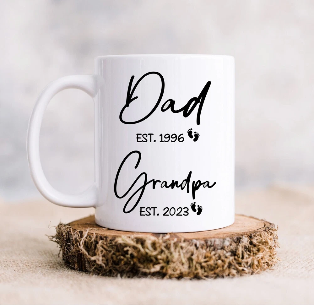 Promoted To Grandpa Gift Dad To Grandpa Custom New Grandfather Gift New Papa Pregnancy Announcement New Grandpa Gift Papa. Baby Feet Product Details.. This high quality 11oz. ceramic white mug has a premium hard coat that provides crisp and vibrant color reproduction sure to last for years. Perfect for all hot & cold beverages. The highest quality printing possible is used. It will never fade no matter how many times you wash it. Material: 100% Ceramic. Print both sides. Dishwasher and Microwave Safe. High Gloss + Premium White Finish. Printed in the U.S.A. Personalized & Custom. We support personalized and custom mug to add custom, when placing an order, you can add notes to the "order note" in shipping address section. Also you can contact us directly via message. Shipping Info. Ready to ship in 1 to 2 business days, All products are made-to-order and proudly printed in the United States. Shipped by USPS and DHL, You will receive your order in 5-7 days. Replace & Refund. All products are defective during shipping broken, chipped will be replaced free of charge. You are not satisfied with the product, we will refund 100% money to you. If any other issues arise, please do not hesitate to message, we would be more than happy to assist you.