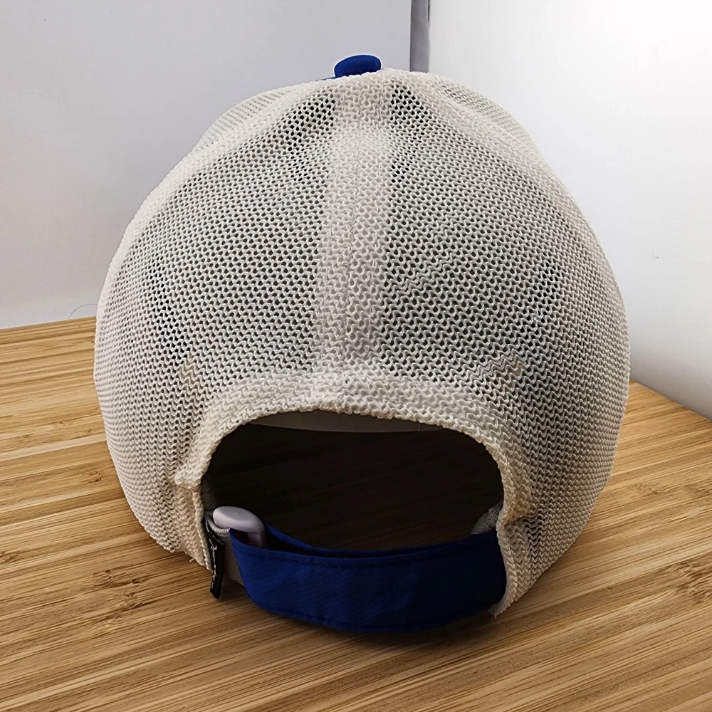 This Imperial golf hat is perfect for any casual occasion. The blue and white color scheme, featuring a solid pattern and the character Pronghorn, adds a touch of style to any outfit. The hat is made of lightweight polyester material, with a mesh back for breathability and moisture-wicking technology to keep you cool and dry. The hook and loop strapback ensures a comfortable and adjustable fit for all head sizes. This unisex hat is suitable for winter, summer, fall, and spring seasons. Whether you're playing a round of golf or just out for a walk, this hat is the perfect accessory to complete your look.