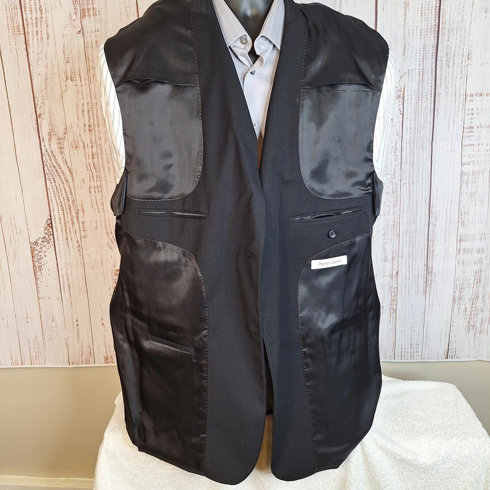 Pronto Uomo Jacket Blazer Mens 50L Black Wool Double Vented Quality used condition. Please check out the measurements before buying to ensure a perfect fit. Shirt Size on Label 50L Shoulder- Hem 34.00'' Shoulder- Shoulder 21.00'' Shoulder- Wrist 26.50'' Armpit- Armpit 25.50'' Top button 25.00'' Everything ships within a day. Feel free to message me with any questions. Thank you very much. 6/8/24