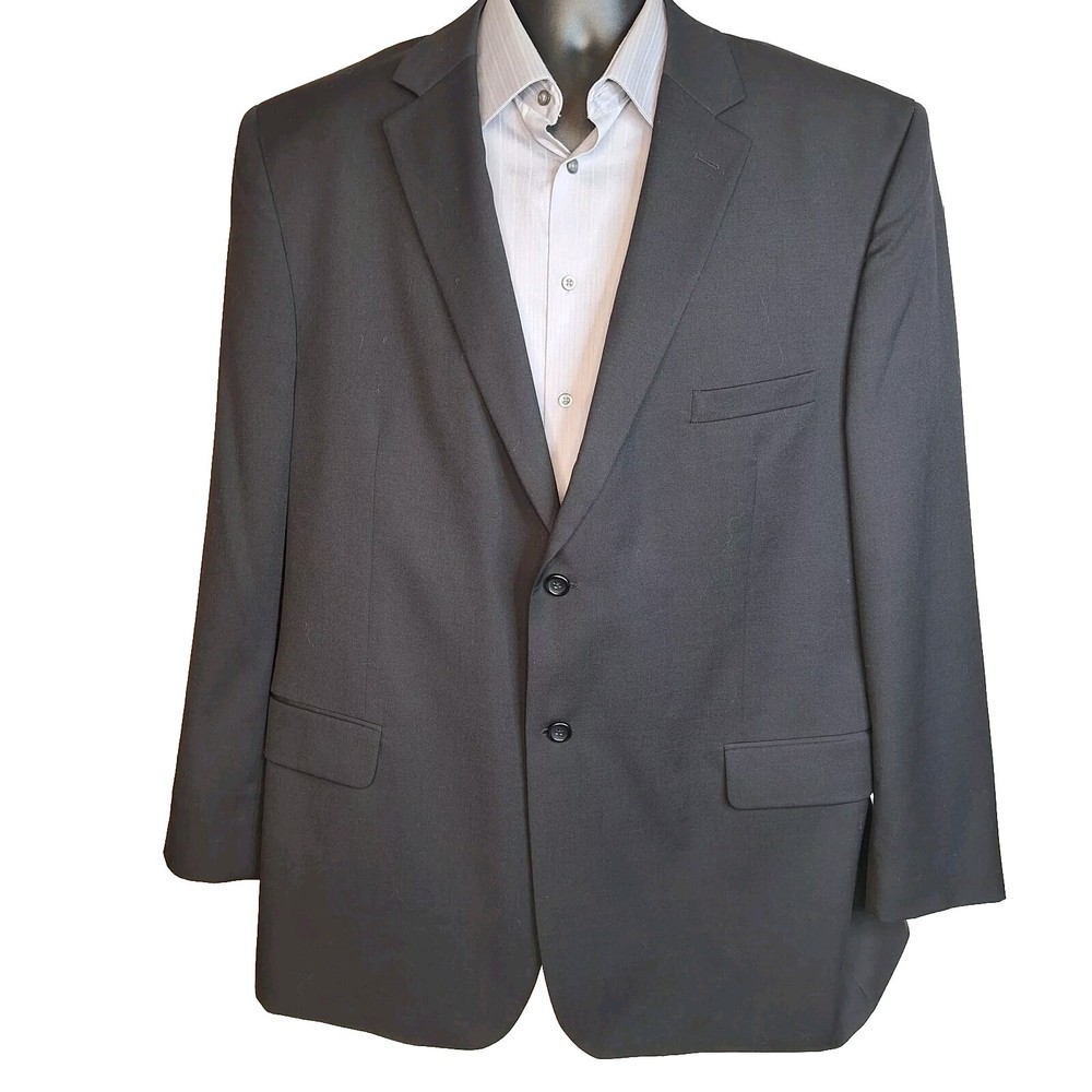 Jeffrey Banks Mens Black Textured Stripe Wool Suit 2-Piece 44R 36x30 Ventless