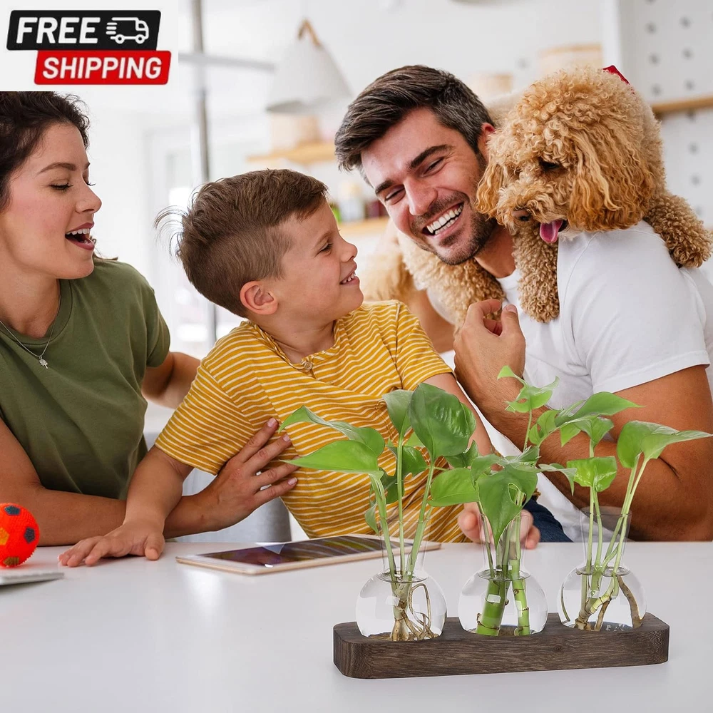 Propagation Stations,Plant Terrarium with Retro Wooden Stand,Unique Gardening Birthday Gifts for Women Plant Lovers,Hydroponics Plants Home Office Garden Decor-3 Bulb Glass Vases 【Plant Propagation Stations】This desktop propagation vases for plants is perfect for hydroponics, air plants, and flowers, and it also helps purify the air and create a relaxing atmosphere. Who likes plants and enjoy life will love it at a glance. 【Stylish Design】The groove design of the wooden tray is combined with a flat bottomed light bulb vase. Compared to other wall mounted bulb vases, it does not restrict plant growth and is easier to carry and exchange water. 【Retro Home Office Decor】Simple and elegant style plant propagation suit any style room. Add nice touch to your house, put it on window sill, coffee table, living room, ding room, kitchen, dormitory and bedroom. It will be more beautiful and eye-catching if you fill the bottle with colored water or some cobbles. 【Best gifts for women plant lovers】Mother's Day, birthday, Christmas, Valentine’s Day, Thanksgiving gift ideas. Nice present to your nature-loving, gardeners. Sweet wedding party, anniversary, and special occasions decoration gifts. 【Size】Wooden tray: 9.5'' L x 2.8'' W x 1'' H, Vase: 2.8"D x 3.9"H; Opening Diameter is 1.4". No need to install, can be used directly, the product should be placed in the no-sunlight to use.Note: Can not be placed in the sun! 【Service Guarantee】Customers First. We are responsible for any damage during transportation. If you have any questions, contact us through Amazon please. We will serve you wholeheartedly until you are satisfied. Product Description YIBOT Bring green into your life It really is cute,The glass is very clear and sit perfectly into the grooves in the wood base, which adds to the appeal, and the dark wood base has a rustic classiness to it. Gifts for Women This is an perfect desktop glass bulb vase for plant's propagations and cuttings, use to propagate baby plants. It is suitable for display fresh flower, hydroponics plants. Make a great gift for the plant-lover in your life. YIBOT Plants Propagation Stations Plant Terrarium With Wooden Stand Package Contents: 3x Glass Vase 1 x Wooden Tray 3 bottle wooden tray size: 9.5'' L x 2.8'' W x 1'' H Vase: 2.8"D x 4"H Material: Wood, Glass Note: No plants or other decorative objects included in this item! Note: Can not be placed in the sun! Best Gift for Plant lover Desktop Propagation station with retro style great for floral arrangement, home or office decoration as well as various gift ideas. Plant Gifts for Plant Lovers Women Best gifts for women plant lovers,suitable for various festivals such as: Mother's Day, birthday, Christmas, Valentine’s Day, Thanksgiving gift ideas. Shipping Fast shipping is very important for us. Our standard US shipping service is FREE. Your order will be shipped within 2-3 business days upon full payment received. Your order will be delivered within 2-3 business days after the handling time. We only ship to the confirmed PayPal address. We reserve the right to cancel any order for any reason at any time. We are not responsible for undeliverable addresses. Returns and payment We offer a 30 days return policy from checkout winning date. We allow only PayPal as payment method FeedBack Your feedback very important to us, after you get your package and you are satisfied with our service please leave us positive feedback If you have any problem with your order / any questions please before leave any type of feedback For any questions, using eBay contact system Please visit our eBay store to check out other items for sale! Thank you for shopping at our store.