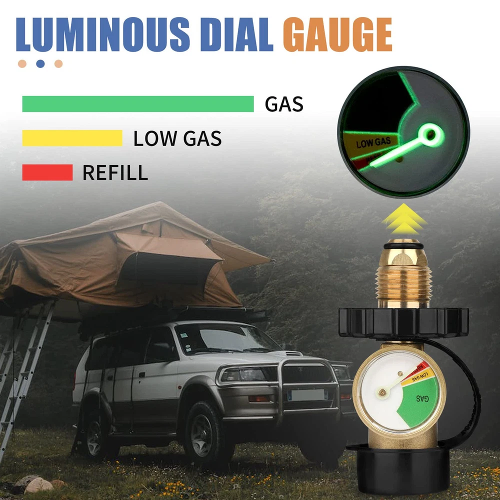 UPGRADED VERSION: This propane tank gas gauge can convert your old style connection type propane tank to new type (type1 / QCC1), converts POL LP Tank to QCC1/Type1 hose and regulator. QUALITY MATERIALS: Propane tank adapter are constructed of solid brass to withstand weather, scratches, dents and corrosion, providing you with long service life, secure connections and protection from leaks. LUMINOUS DIAL GAUGE: The gas tank gauge can detect dangerous leaks and read fuel level at glance by the color coded dial outside.This propane adapter is sealed well to ensure your personal safety when using it to split gas. EASY TO INSTALL: No tools are required and can be easily installed by handwheel handle to tighten. Quite easy to install and use WIDE APPLICATIONS: Propane tank adapter with gauge are perfect for use with gas grills, heaters, smokers, camping stoves, lanterns, tabletop grills, fire pit tables, turkey fryers and many more propane appliances.