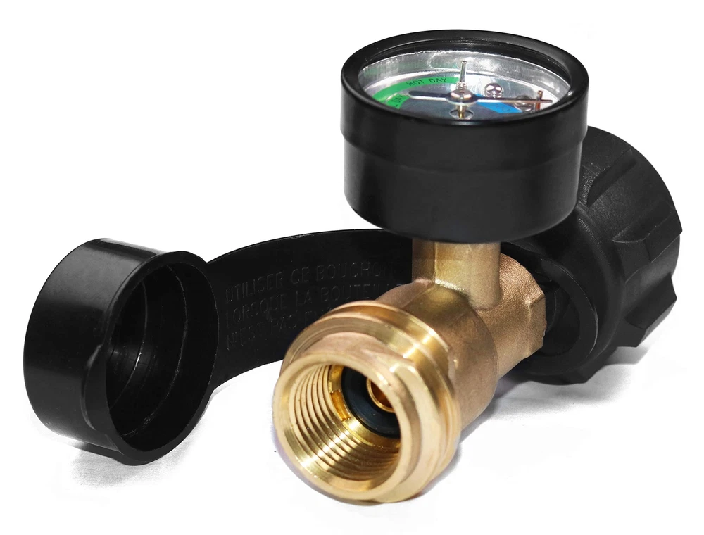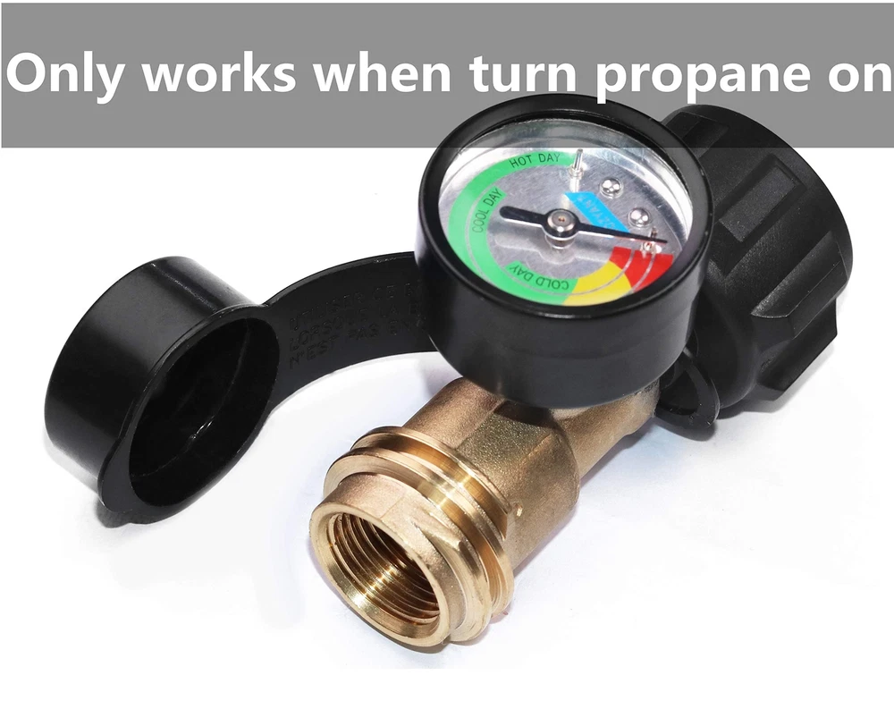 with all appliances with a QCC1 / type1 connection and 5 lb to 40 lb propane tanks. Heavy duty 100% solid brass construction withstands weather, scratching, denting and corroding. Monitors fuel level without removing the tank. Gauge display accounts for ambient temperature change. Color coded dial for allowing you to see at a glance when your propane level is low. This propane tank gas gauge can be worked with propane tank cylinders, propane regulator with hose and propane adapter Coming with dust cover. No tools required and easy to install with handheel grip for tightening. Great for using gas grill, heater, smoker, camp stove, lantern, tabletop grill, fire pit table, turkey fryer and more propane appliances.