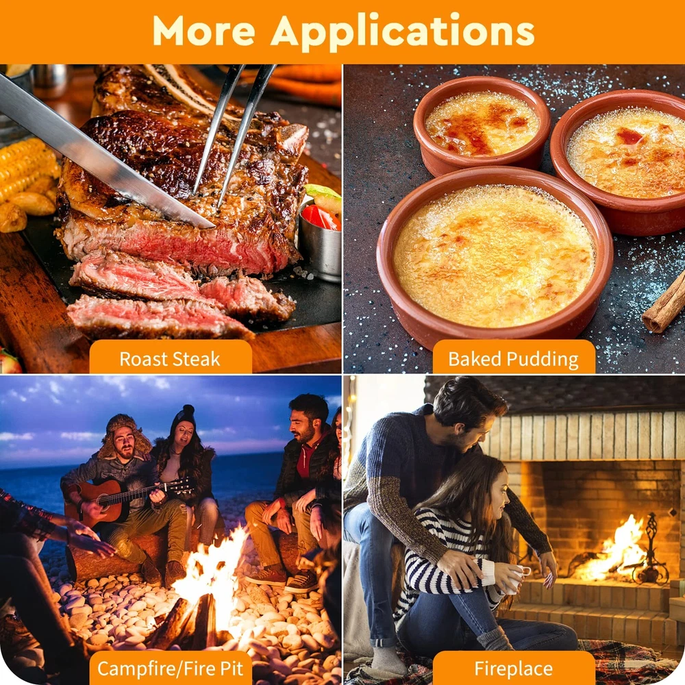 ★【Powerful Cooking Torch】Our Cooking torch heats up to over 3000° F with ease, 700,000 BTU of maximum heat output to cook your food quickly and efficiently. ★【High Quality & New Design】Exclusively designed brand new appearance. Our Kitchen Torch head coating uses the most advanced nanotechnology for durability and no paint peeling. ★【Safe to Use】 Our Grill Torch features a security lock design that prevents any accidental ignition, and has a stand to prop your tank upright when not in use for easy cooling of your torch. ★【Easy to Use】 You're in full control of your Blow Torch, just turn the knob and press the trigger to get the flame. Not only this but your grill torch also has a maximum power by pushing the trigger handle all the way! ★【Versatile Application】The Propane torch is great for sous-vide cooking, grilling steak & bell peppers, caramelizing sugar atop creme brulee, melting cheese and toasting bread crumbs. It can also be used to light your charcoal grill, campfire, fireplace and anything else you can think of. ★【Wide Fuel Adaption】The Charcoal Starter can be used with propane, MAPP, MAP-Pro gas. whatever you've got to hand, our kitchen cooking torch can easily connected to these fuel. ★【3-Year Quality Warranty】We provide the 3-year warranty for the grill torch, replace a new set directly once it has any quality problems. If you encounter any product after-sales problems, you can contact support team at any time, we promise to provide you with a satisfactory solution within 24 hours.