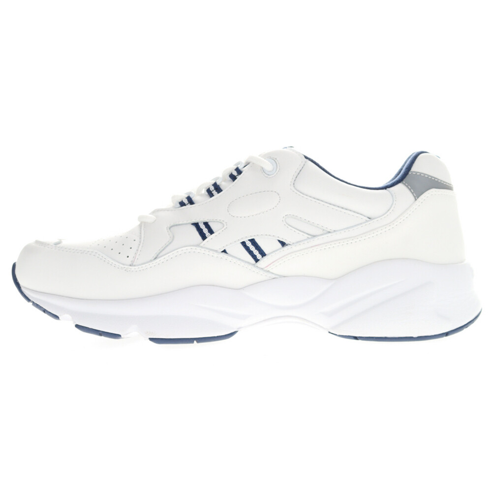 Stability Walker Walking Shoes Product Details Leather upper Speed lacing closure system Rigid heel counter with removable PU footbed Arch supporting EVA midsole Medicare Approved One of Propet's most popular models, this walking shoe is designed with a wider forefoot and heel base, for the ultimate in stability. The PU insole features a heel pad and cushioning ridges for superior comfort. Additional Details Color: White Occasion: Casual Gender: Mens Age: Adult Brand: Propet