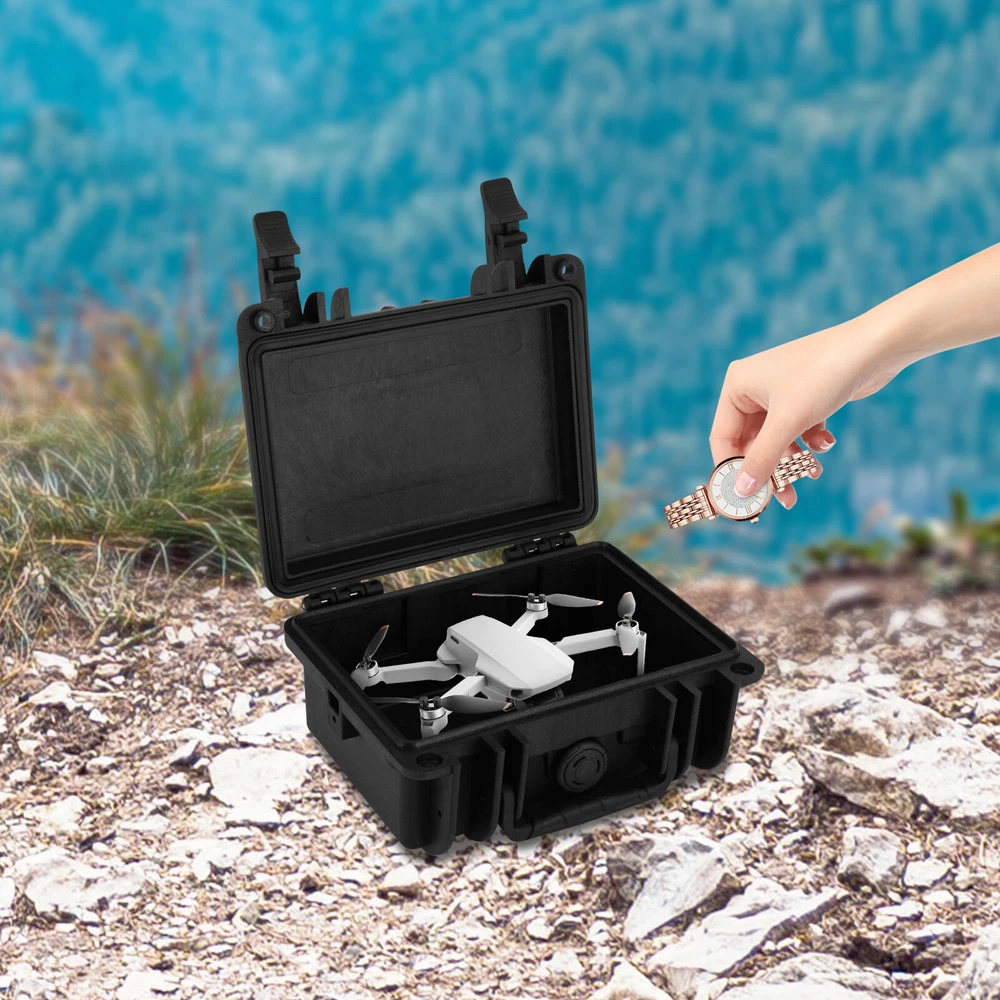 Specification Material: PP, Alloy, 304 Stainless Steel, Soft Rubber Color: Black Shape: Rectangular Process: Injection Molding Assembly Required: No Number of Lock Holes: 2 Waterproof Rating: IP67 Temperature Resistance Range: -40~90°C/-40~194°F Lock Hole Diameter: 8mm/0.31in Recommended Combination Lock Diameter: ≤6mm/0.24in Wall Thickness: 6mm/0.24in Capacity: 1.8L/1.63Qt Product Size: 21.6*18*10.3cm/8.50*7.09*4.06 in Package Size: 22*18*10.3cm/8.66*7.09*4.06 in Net Weight: 0.8kg/1.76 lbs Gross Weight: 0.9kg/1.98 lbs Package Included 1* Protective Dry Case Have a nice day~ Description With its excellent protection performance, high customization flexibility, and convenient carrying design, the protective dry case is an advanced protection solution designed to protect all kinds of precision electronic equipment and important instruments. You can use it in a wide range of applications such as military, medical, outdoor adventure, movie and television production, and many other fields. Key Features Rugged and Durable: The 6mm high-strength PP and alloy materials and injection molding process make it resistant to pressure and corrosion and able to withstand extreme temperatures (-40 to 194°F) to protect the equipment. Waterproof & Dustproof: IP67-rated waterproof and dustproof design ensures that the equipment inside the case remains dry and clean in harsh weather or sandy environments. Effective Shock Absorption: It has a built-in shock-absorbing sponge, which can effectively absorb the vibration during transportation and reduce the risk of damage. Automatic Air Pressure Balancing: When the air pressure inside and outside the case is not consistent, you can press the automatic air pressure balancing valve to easily open the case and keep it dry. Safe and Reliable: Thickened latches connect the case tightly, preventing self-opening on impact or unauthorized opening, and guaranteeing the safety of the equipment. In addition, there are two locking holes (diameter: 0.31in) designed on the case body, convenient for you to add a combination lock by yourself (not included). Easy to Carry: Suitable weight (1.76lbs) and size (8.50*7.09*4.06 ) make it easy for you to carry it around, suitable for various transportation scenarios. You can even put it in your backpack. Thoughtful Design: The already cut square sponge is convenient for you to cut or tear off the sponge according to the specific size of the placed object to meet the storage needs of different equipment. Large Capacity: The 1.63-quart capacity allows you to store multiple devices at the same time, relieving you of the hassle of carrying multiple cases. Worry-free Cleaning: A smooth surface and simple structure make daily cleaning simple and fast. Customer Service: We aim to provide quality products and services. If you have any problems, please feel free to contact us. We will reply and solve the problem for you as soon as possible. Details Ergonomic Soft Rubber Handle: It provides a better and more comfortable grip for you to carry and move the case easily. Seal Ring: The case is inlaid with a seal ring to ensure better drying results and equipment safety. 304 Stainless Steel Chain: It can better connect the upper and lower lids, providing easier opening and closing and long-lasting usability. Smooth Edges: The smooth and burr-free edges enhance the beauty of the product and better care for your skin when cleaning it. How to Customize Sponge Size Inside the box is a cut square sponge, gently press the item on the sponge to form an outline. Gently peel the sponge by hand along the contours of the press. Now you can start DIY! Application It is suitable for storing cameras, drones, recording devices, radios, sports cameras, compact projectors, and audio devices, as well as small parts, wires, memory cards, batteries, wallets, cell phones, keys, and other accessories(all excluded), that are widely used in various fields such as instrumentation, gauges, security, electronics, electric power, communications, aerospace, chemical industry, nuclear power, exploration, scientific research, transportation, photography, troopers, unmanned aerial vehicles,and expedition, and can be applied in camping, scuba diving, hiking, kayaking, rowing or mountaineering. Specification Material: PP, Alloy, 304 Stainless Steel, Soft Rubber Color: Black Shape: Rectangular Process: Injection Molding Assembly Required: No Number of Lock Holes: 2 Waterproof Rating: IP67 Temperature Resistance Range: -40~90°C/-40~194°F Lock Hole Diameter: 8mm/0.31in Recommended Combination Lock Diameter: ≤6mm/0.24in Wall Thickness: 6mm/0.24in Capacity: 1.8L/1.63Qt Product Size: 21.6*18*10.3cm/8.50*7.09*4.06 in Package Size: 22*18*10.3cm/8.66*7.09*4.06 in Net Weight: 0.8kg/1.76 lbs Gross Weight: 0.9kg/1.98 lbs Package Included 1* Protective Dry Case Notes Please check the style and size before purchasing. Please note that the case does not include a combination lock, if you need it, please purchase and install it yourself. Please allow the slight color difference caused by the shooting light and 1-3cm error due to manual measurement and make sure you do not mind before ordering. Payment Delivery details Terms of sales About us Contact us Payment We accept ebay payment 。 Fees such as import duties, taxes are not included in the item price or shipping costs. These charges are the buyer's responsibility. Delivery details Shipping: 2-9 working days to: USA Terms of sales We maintain high standards of excellence and strive for hundred percent customer satisfaction. Feedback is very important to us. We hope that you contact us immediately before you give neutral or negative feedback, so that we can address your concerns. It is impossible to address issues if we do not know about them! About us Your satis faction is our ultimate goal. We work hard to earn your trust and future business. Our certified technicians have tested each item before shipping. The unit comes with 1 year lim