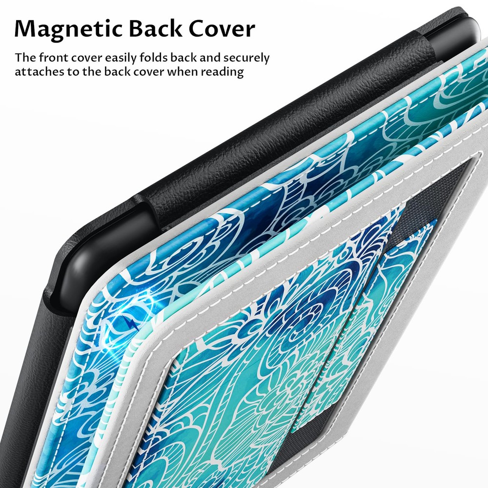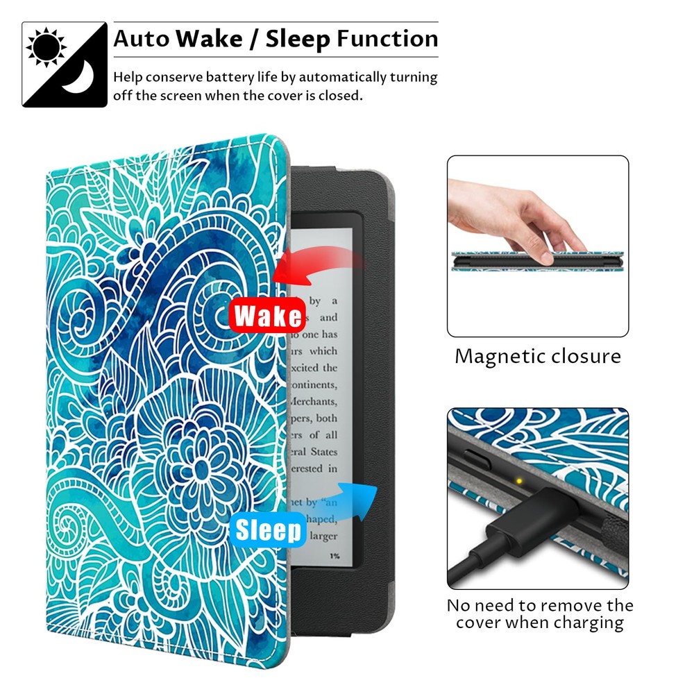 [Compatible]: Designed exclusively for 6" Kindle Paperwhite (Fits All-New 10th Generation 2018 / All Paperwhite Generations Prior to 2018). Please check the 2nd picture. [Hands-free]: With foldable stand design so you can set in on the table and read without having to hold it, the cover folds back and secures to back of case. Hand strap allows to read with one hand easier and more comfortable. [Multifunctional]: ensures cover is securely closed, secures your device without straps covering the front, protects kindle paperwhite when not using it; Build-in card slot is convenient to store your cards; Easy access to charge and turn on/off. [Auto-wake/sleep]: This case for kindle paperwhite 10th generation can auto wake or put your device to sleep by opening or closing the cover, saving power for longer reading time. [Protective]: Slim lightweight with premium quality PU leather. The no-scratch microfiber interior adds comfort and an additional layer of protection. Prevent from finger prints, dirt, and scratches.