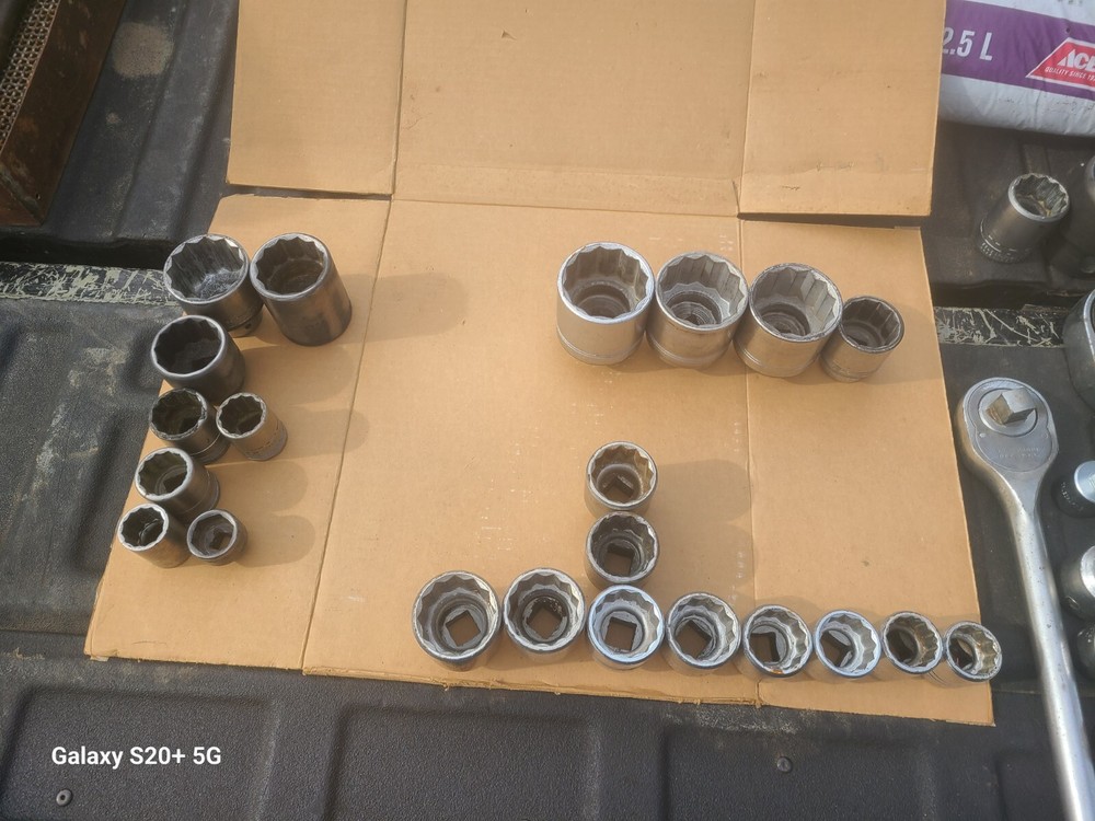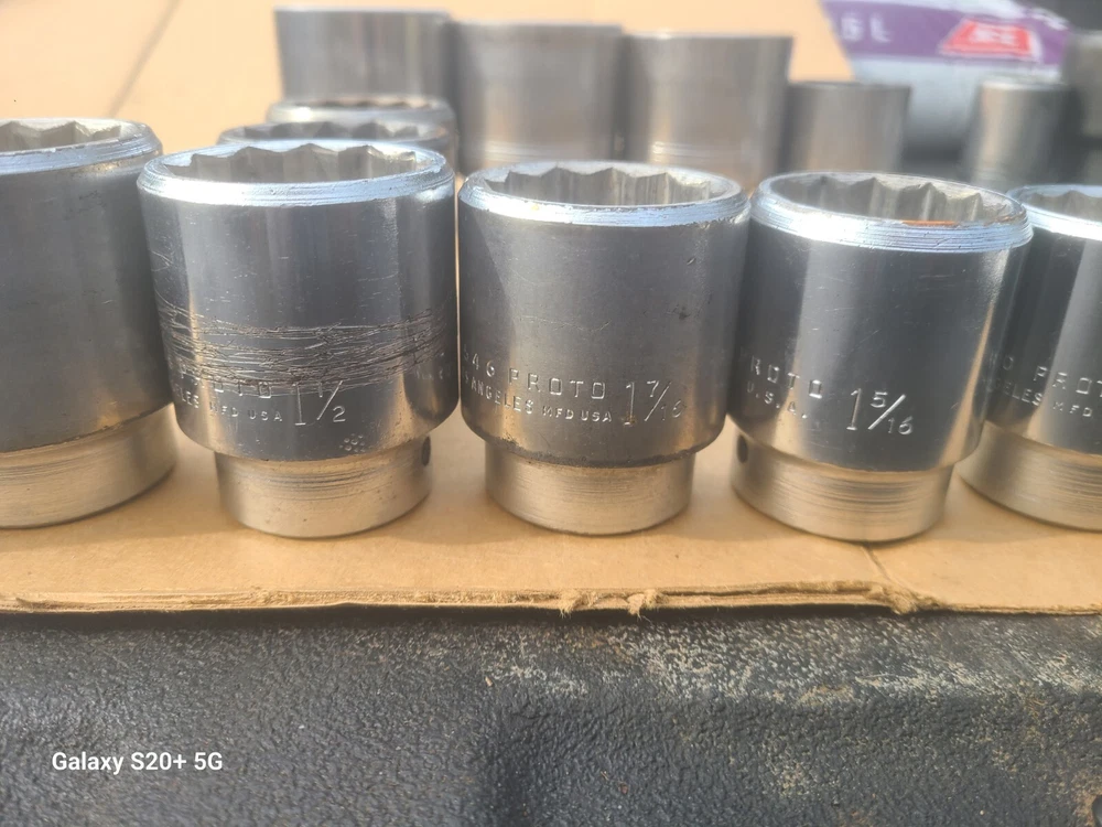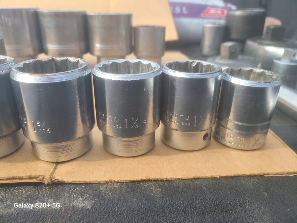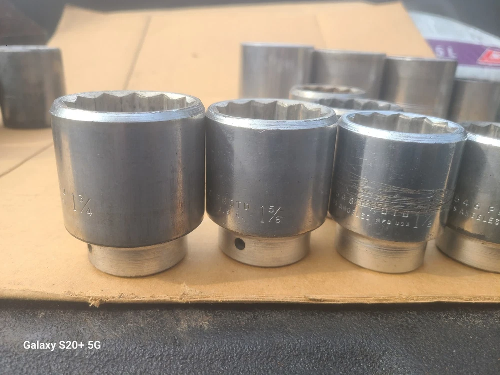This listing is for all of the large tools listed. The Metal tool tray is not included. There are 2 proto ratchets, 1* & 3/4" plus adapters. Also, a Mac breaker bar. I have posted a picture of the Williams, Proto, and Plumb Sockets included, but there are also some other brands included that are in the first picture on the left. Both ratchets work well, and the sockets are all in good usable condition. They will be shipped in a few boxes to keep the weight down. All of the sockets are 3/4 drive. Once again, you will receive all the sockets and ratchets pictured. Please feel free to ask questions, and thank you for looking...