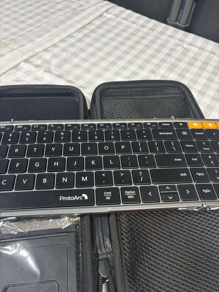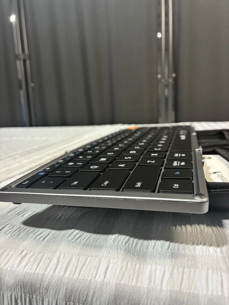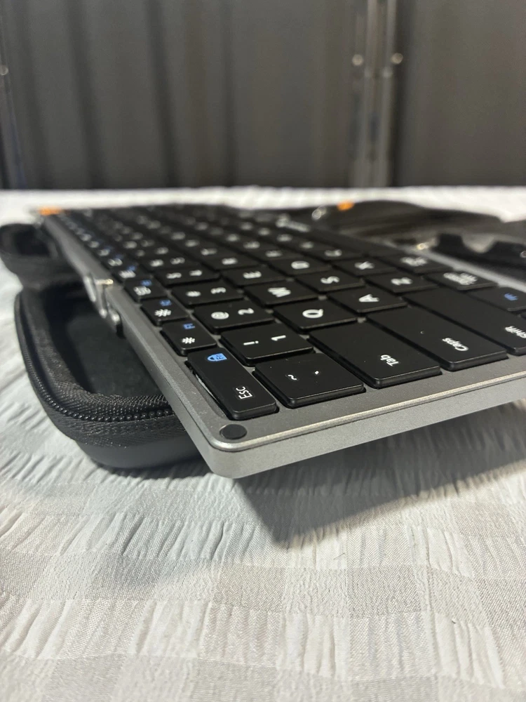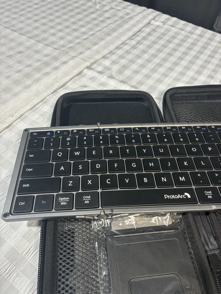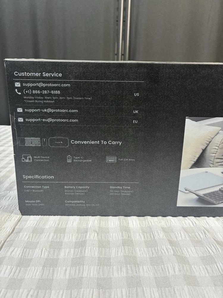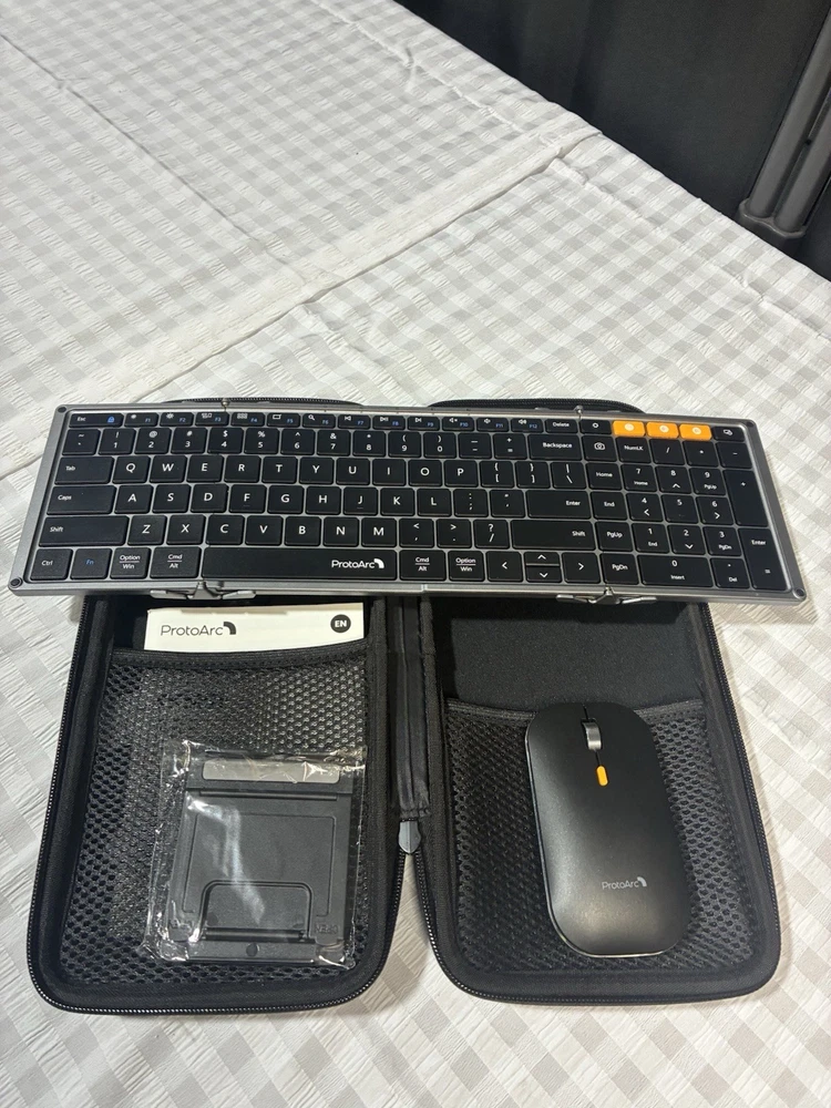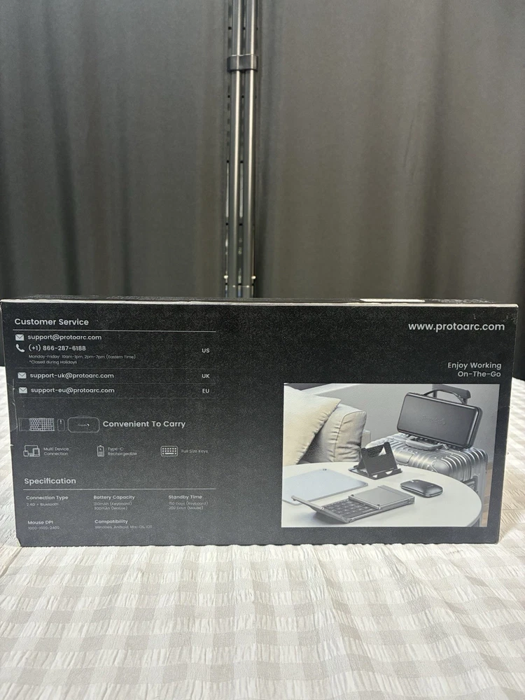 The ProtoArc XKM01 Foldable Full-Size Wireless Keyboard & Mouse Combo in Silver is a compact and portable unit with a sleek silver and black color design. It features a Bluetooth connectivity option and comes with a charger included. The keyboard has a full-size layout with English language options and is designed for easy folding and storage. Made in China, this combo set is perfect for users looking for a convenient and stylish solution for their computing needs.
