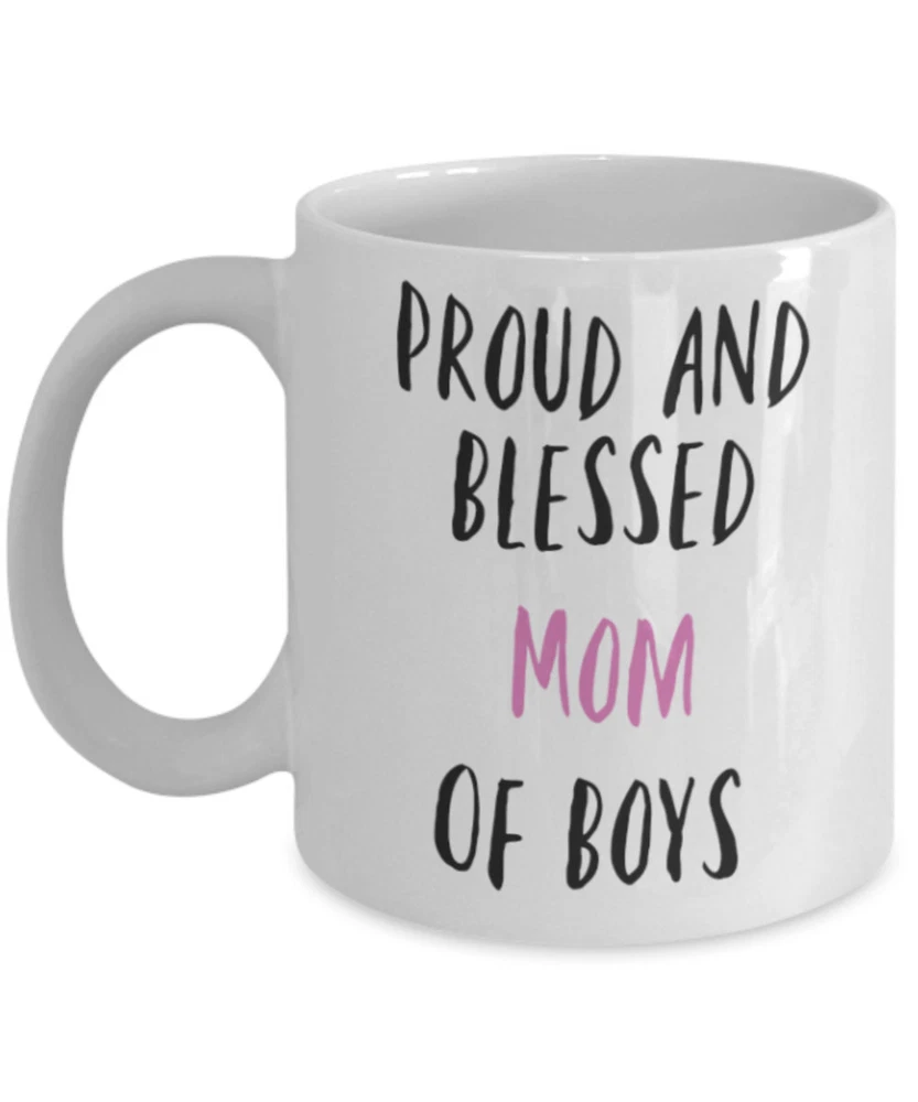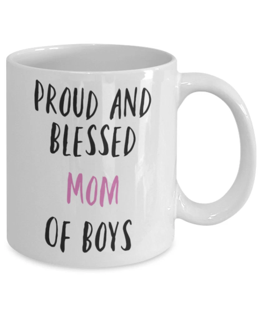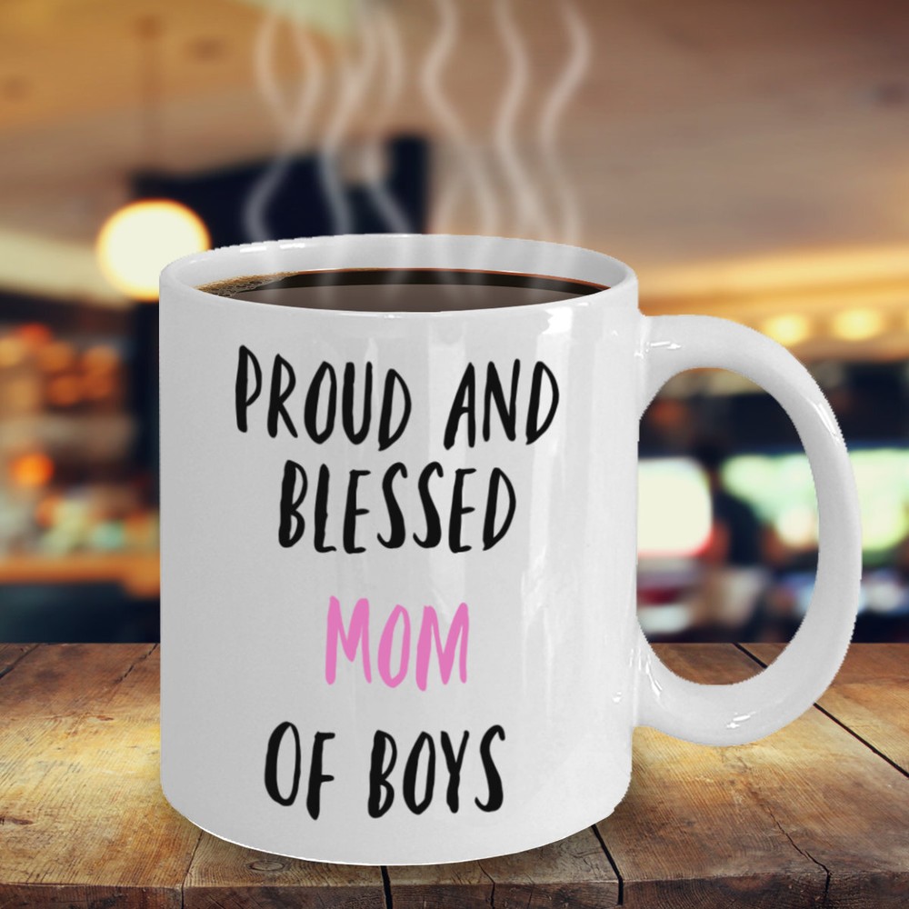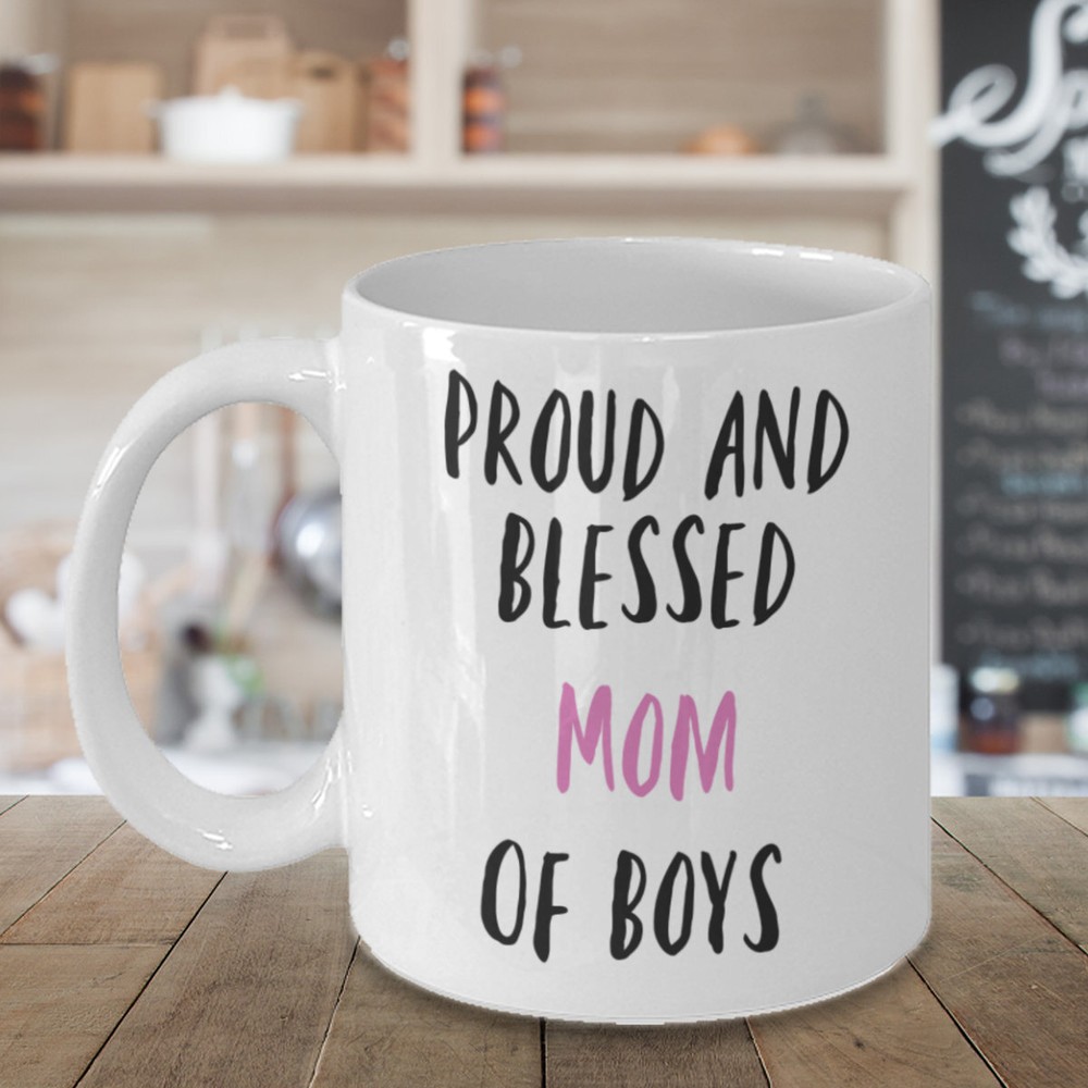 Mothers Day Mug Gift Proud And Blessed Mom Of Boys Coffee Mug Ceramic Gift Mug Product Details.. This high quality 11oz. ceramic white mug has a premium hard coat that provides crisp and vibrant color reproduction sure to last for years. Perfect for all hot & cold beverages. The highest quality printing possible is used. It will never fade no matter how many times you wash it. Material: 100% Ceramic. Print both sides. Dishwasher and Microwave Safe. High Gloss + Premium White Finish. Printed in the U.S.A. Personalized & Custom. We support personalized and custom mug to add custom, when placing an order, you can add notes to the "order note" in shipping address section. Also you can contact us directly via message. Shipping Info. Ready to ship in 1 to 2 business days, All products are made-to-order and proudly printed in the United States. Shipped by USPS and DHL, You will receive your order in 5-7 days. Replace & Refund. All products are defective during shipping broken, chipped will be replaced free of charge. You are not satisfied with the product, we will refund 100% money to you. If any other issues arise, please do not hesitate to message, we would be more than happy to assist you.