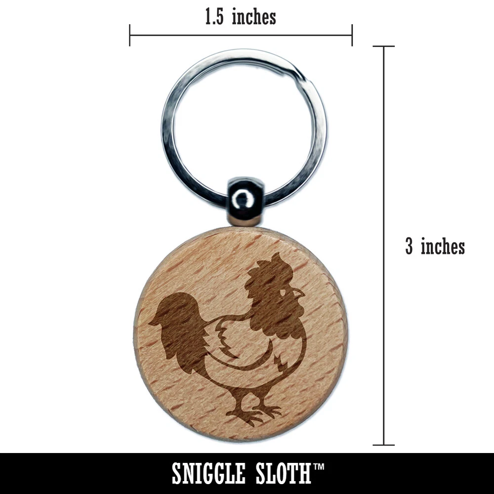Proud Little Rooster Chicken Engraved Wood Round Keychain Tag Charm