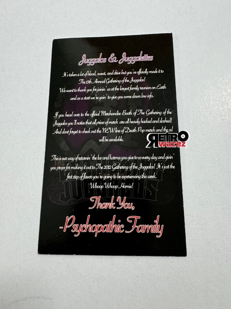 Psychopathic Records - Thank You Flyer 3x5” insane clown posse gathering juggalo