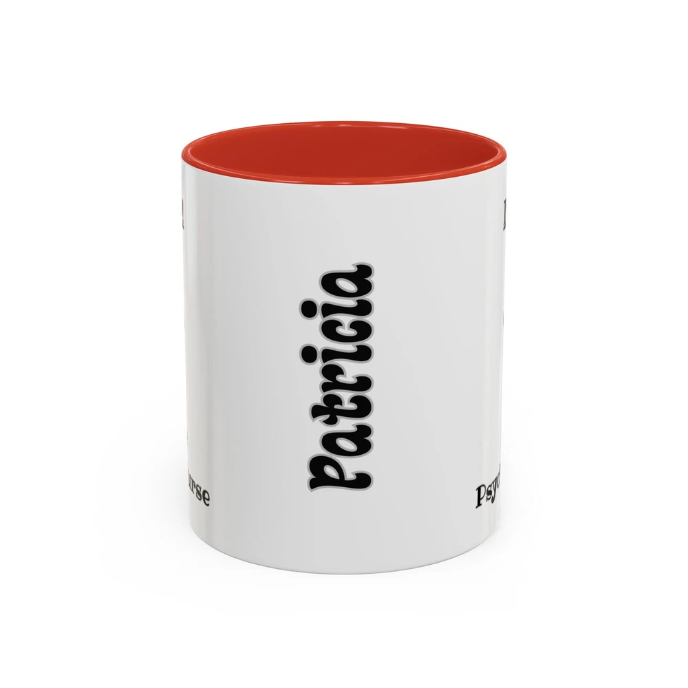 Introducing a vibrant Accent Coffee Mug, perfect for brightening up your daily beverage routine. This mug radiates personality and fun, making every sip feel special. It’s ideal for coffee lovers, tea enthusiasts, or anyone who enjoys a unique drinking experience. The bold colors and playful designs are great for gifting on occasions like birthdays, holidays, or just as a delightful treat for yourself. Celebrate life’s moments with a product that adds a splash of joy to your day! Whether at home, in the office, or as a quirky gift for friends and family, this mug is sure to spark conversations and smiles! See our matching spouse mug. Product features - Microwave-safe for easy heating - Dishwasher-safe, making cleanup a breeze - Vibrant colors from the latest printing techniques - Available in two sizes: 11oz and 15oz - Lead and BPA-free ceramic material for safe use -Personalize with your name Care instructions - Clean in dishwasher or wash by hand with warm water and dish soap