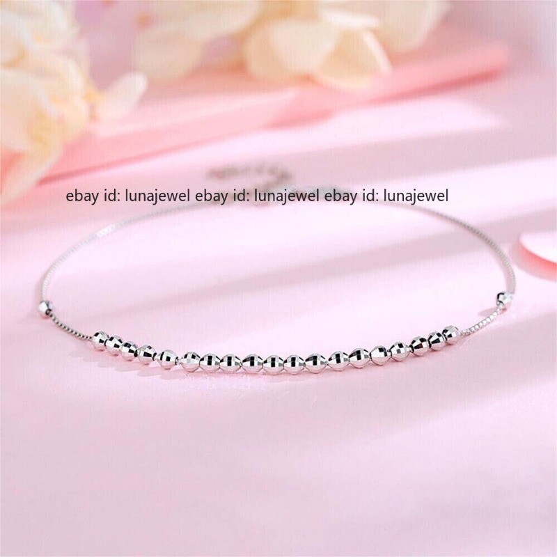 Tiffany & Co. Silver Heart Ball Chain Bracelet Blue Size 7.5