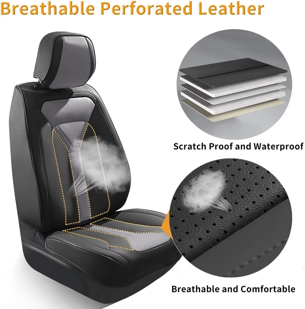 Notice_ Please refer to the list of your car modle and year before placing an order, if you do not know your car modle or not sure whether it is suitable or not, contact us with the car picture. Feature Leatherette Seat Covers_ Premium faux leather is durable, comfortable and waterproof. made of artificial leather, high-elastic sponge, heat-pressed non-woven fabric and non-slip base fabric, allows you to sit for a long time without getting tired. Compatible Airbag_ The front seats have airbag reserve ports on the side to ensure that the airbags can be popped out in case of emergency. Easy To Clean_ Wipe clean easily with just a damp towel, keeping your seat protects from stains, spills and damage. Easy To Install_ The package comes with an installation manual, please read it before you start the installation. With chucks and hooks, you can fix the seat cover easily without worry of sliping. Specification Type_ Front Rear Seat Cover Color_ Black+grey Material_ Faux Leather Fitment_ Fit For HYUNDAI KONA 2018-2024 Package Included 2* Front Seat Covers 3* Rear Backrest Covers 5* Headrest Covers 1* Parts required for installation in one bag 1* Install Guide On Oct 19, 2024 at 01:50:29 PDT, seller added the following information: