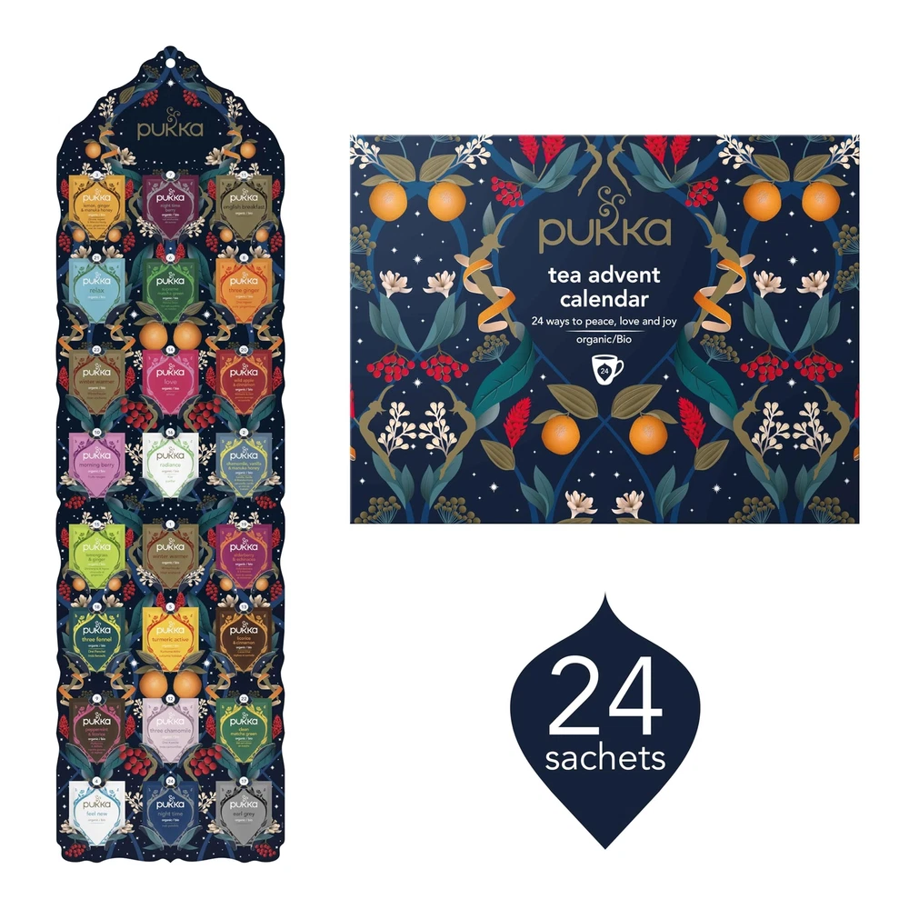 Pukka Herbal & Tea Gift Calendar, Tea Selection made with Organic Ingredients, Best for Birthdays, Anniversaries & Holidays, 24 tea bags Description Treat yourself or someone you love this holiday season and unwrap a delicious daily surprise with the Pukka Tea Advent Calendar. Discover a fusion of flavours in every cup, including the festive essence of cinnamon, zesty orange, sweet elderberry and more. Featuring 24 tea sachets, each day brings a new, mouth-watering blend to enjoy as you countdown to Christmas. The Pukka Tea Advent Calendar contains unique blends created by herbalists and based on the health-promoting philosophy of Ayurvedic wisdom, each made with the finest organic herbs sustainably and ethically sourced from around the world. Our blends include favourites like Pukka Three Ginger; Winter Warmer; Night Time; Chamomile, Vanilla & Manuka Honey; Wild Apple & Cinnamon and Supreme Matcha Green. Designed to bring a daily dose of joy and warmth to your heart, this unique selection is perfect for devoted tea lovers looking for an alternative to chocolate. This beautifully crafted advent calendar is also fully recyclable, right down to the organic cotton string on our home-compostable tea bags. Pukka means 'real, authentic or genuine' in Hindi, reflecting our commitment to quality since 2001. We use 100% organic, ethically sourced herbs to create high-quality blends with delicious flavours in every cup. Relish the deliciousness of herbal goodness by pouring boiling water over your Pukka tea bag. Leave it to infuse for 3–5 minutes before enjoying your delicious hot tea. Features: Gift your family or friends a delicious daily surprise with the herbal Pukka Tea Gift, and unlock the magical secrets of herbal goodness in every sip Indulge in a fusion of mouth-watering flavours, including the festive essence of cinnamon, the zesty notes of orange and the delightful sweetness of elderberry in our unique blends Featuring 24 tea sachets, each thoughtfully crafted blend is designed to holistically nourish your body and mind Made with organic ingredients for the devoted tea lover, this gift contains delicious and healthy blends that can be enjoyed from rise to rest its the perfect alternative to chocolate Our tea calendar comes with fully recyclable paper sachets and home-compostable tea bags that retain quality and flavour until youre ready to enjoy Masterfully crafted by herbalists and based on Ayurvedic science, Pukka tea is made with 100% organic, ethically sourced herbs that embrace the power of nature in every cup Product Details: Brand: Pukka Item Form: Teabags Flavor: Herbal Tea Variety: Green Unit Count: 1 Count Package Dimensions : 10.08 x 7.64 x 0.83 inches; 5.61 ounces Manufacturer : Lipton Tea & Infusions Company Country of Origin : USA Handling We will ship all orders within 3 business days of payment. Delivery We do not ship outside of the Continental US. Feedback We take our reputation seriously, we buy and sell online, so we understand the value of trust. If you are unsatisfied with your order, please contact us and we will work with you to resolve it to your satisfaction.