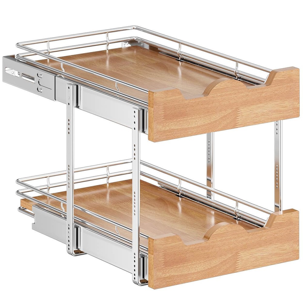 Pull Out Cabinet Organizer 14" W x 21" D, 2 Tier Slide Out Shelf, Heavy-Duty ...