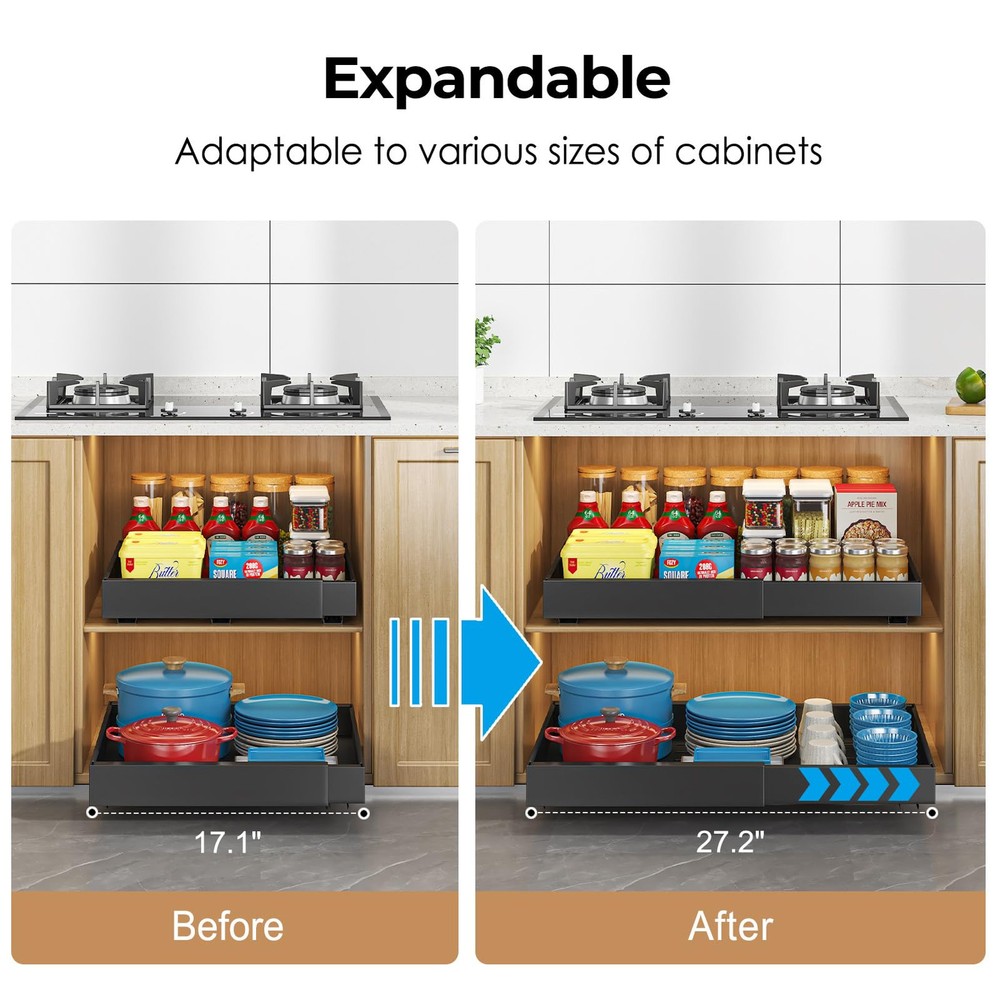 Pull Out Cabinet Organizer, 1PC 16.5"Deep Expandable (17.1"-27.2") Heavy Duty...