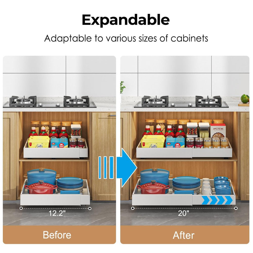 Pull Out Cabinet Organizer,2PCS 21" Deep Expandable (12.2"-20") Heavy Duty Pu...
