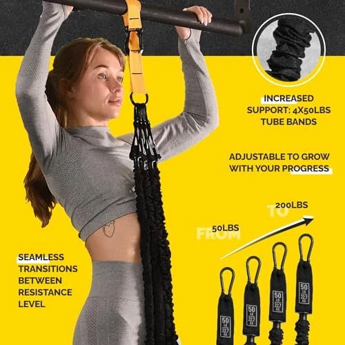 Pull Up Assistance Bands Set - 4 Heavy-Duty Pull Up Bands, Black and Yellow