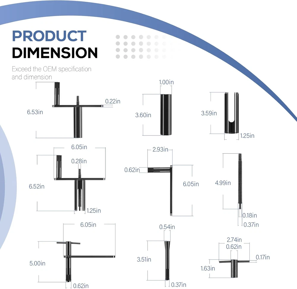 Puller Premier For Moen Cartridge Extractor Tool Posi-Temp 1222, 1225 and 1200 Features: Widely Fitment -- 999150 Shower cartridge puller tool fits for Moen single handle faucets 1200 and 1225, for Moen Posi-Temp 1200 shower cartridge. Innovative Design -- Features a unique threaded rod, sleeve, and crank system that eliminates the need for brute force, making the extraction process easier and safer for your plumbing fixtures. Effortless Extraction -- Say goodbye to the hassle of stuck cartridges! Designed for repeated use by professionals, our cartridge extractor tool allows for smooth, easy removal of frozen cartridges without excessive force. Jaga-tools In Search of Excellence! Puller Premier For Moen Cartridge Extractor Tool Posi-Temp 1222, 1225 and 1200 Puller Premier For Moen Cartridge Extractor Tool Posi-Temp 1222, 1225 and 1200 Features: Widely Fitment -- 999150 Shower cartridge puller tool fits for Moen single handle faucets 1200 and 1225, for Moen Posi-Temp 1200 shower cartridge. Innovative Design -- Features a unique threaded rod, sleeve, and crank system that eliminates the need for brute force, making the extraction process easier and safer for your plumbing fixtures. Effortless Extraction -- Say goodbye to the hassle of stuck cartridges! Designed for repeated use by professionals, our cartridge extractor tool allows for smooth, easy removal of frozen cartridges without excessive force. Comprehensive Kit -- Cartridge removal kit includes model # 999150 for Moen 1220 and 1225 cartridges, and model # 999150-6 designed for hassle-free extraction of 1222 series Posi-Temp cartridges. Excellent Quality -- Constructed from premium steel and finished with coating to prevent corrosion, rust and oxidation. Hardened construction offers high strength and impact resistance for long service life. Package Included: 999150 Shower Cartridge Removal Tool Item Specifics Brand JT-Motor Type Shower Cartridge Extractor Tool MPN 999150 Warranty 1 Year Material Stainless Steel Features Easy installtion Item Weight 2 pounds Color Black Set or dingle item Set Batteries Included No Batteries Required No Number in Pack 5 Payment Returns Jaga-tools In Search of Excellence! DESCRIPTION PAYMENT SHIPPING RETURN POLICY Puller Premier For Moen Cartridge Extractor Tool Posi-Temp 1222, 1225 and 1200 Puller Premier For Moen Cartridge Extractor Tool Posi-Temp 1222, 1225 and 1200 Features: Widely Fitment -- 999150 Shower cartridge puller tool fits for Moen single handle faucets 1200 and 1225, for Moen Posi-Temp 1200 shower cartridge. Innovative Design -- Features a unique threaded rod, sleeve, and crank system that eliminates the need for brute force, making the extraction process easier and safer for your plumbing fixtures. Effortless Extraction -- Say goodbye to the hassle of stuck cartridges! Designed for repeated use by professionals, our cartridge extractor tool allows for smooth, easy removal of frozen cartridges without excessive force. Comprehensive Kit -- Cartridge removal kit includes model # 999150 for Moen 1220 and 1225 cartridges, and model # 999150-6 designed for hassle-free extraction of 1222 series Posi-Temp cartridges. Excellent Quality -- Constructed from premium steel and finished with coating to prevent corrosion, rust and oxidation. Hardened construction offers high strength and impact resistance for long service life. Package Included: 999150 Shower Cartridge Removal Tool Payment Returns All rights reserved.