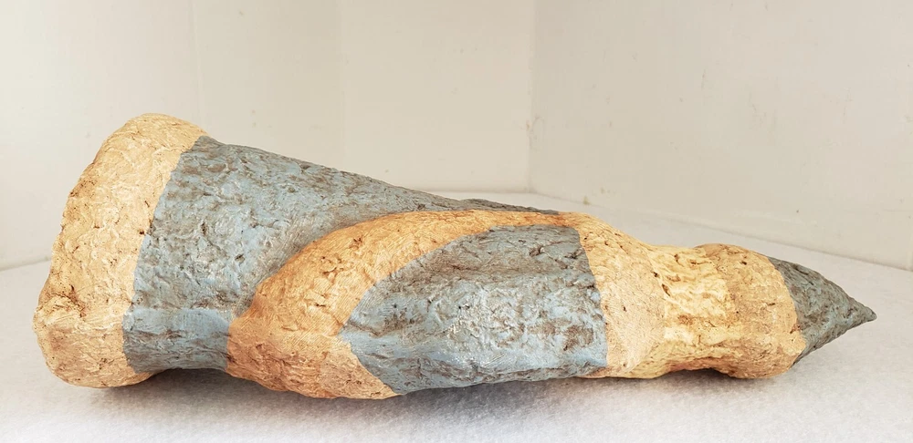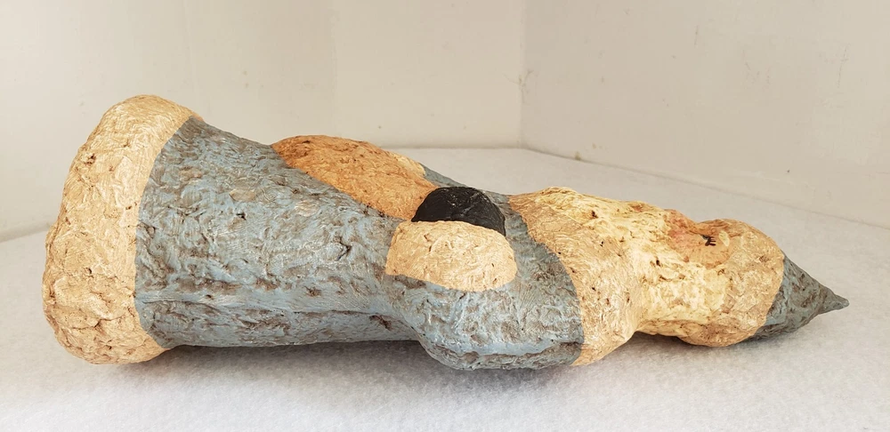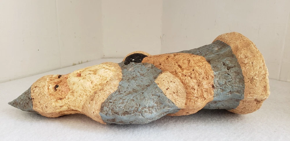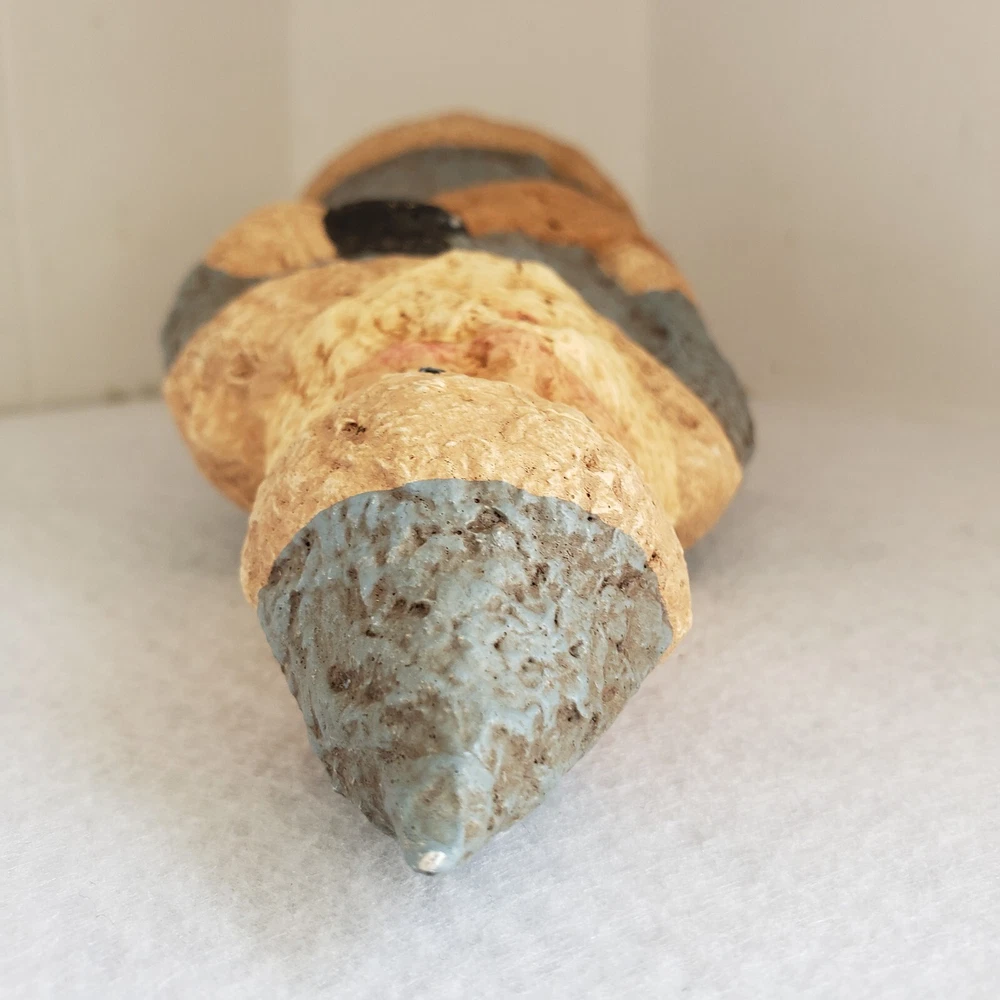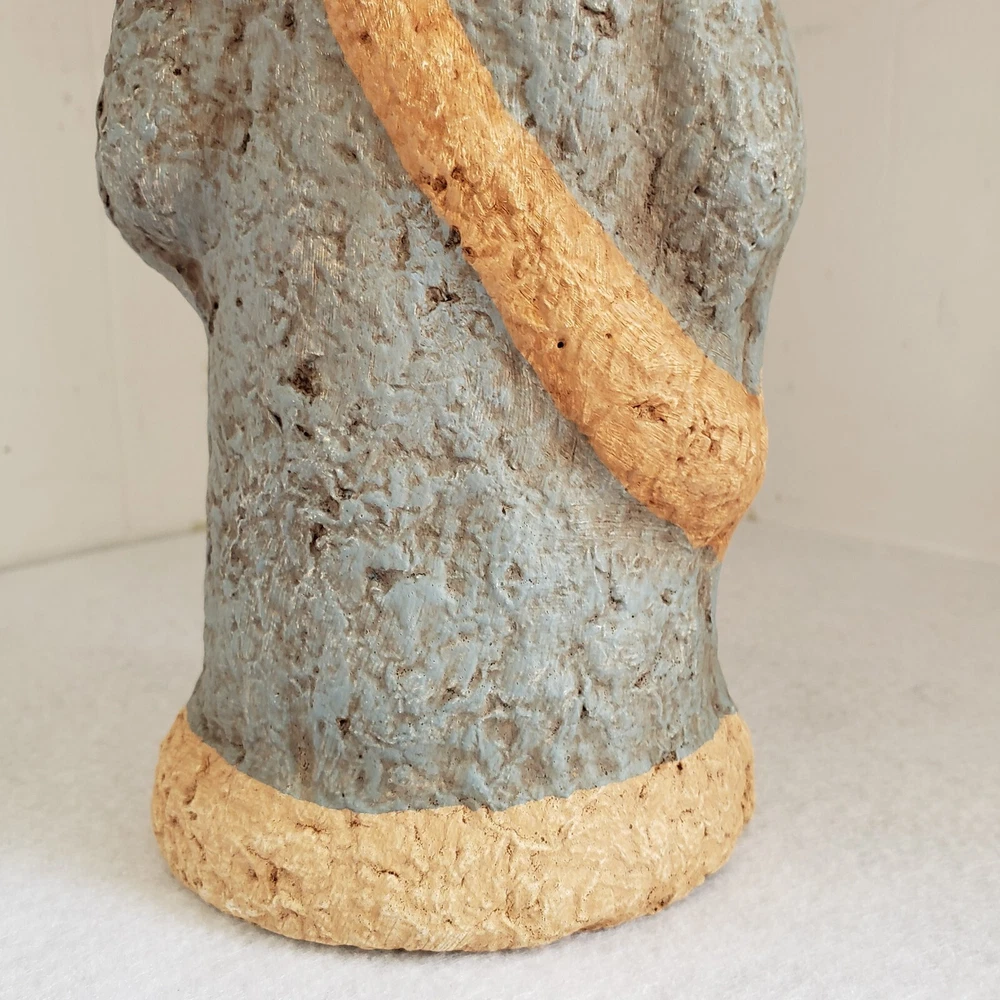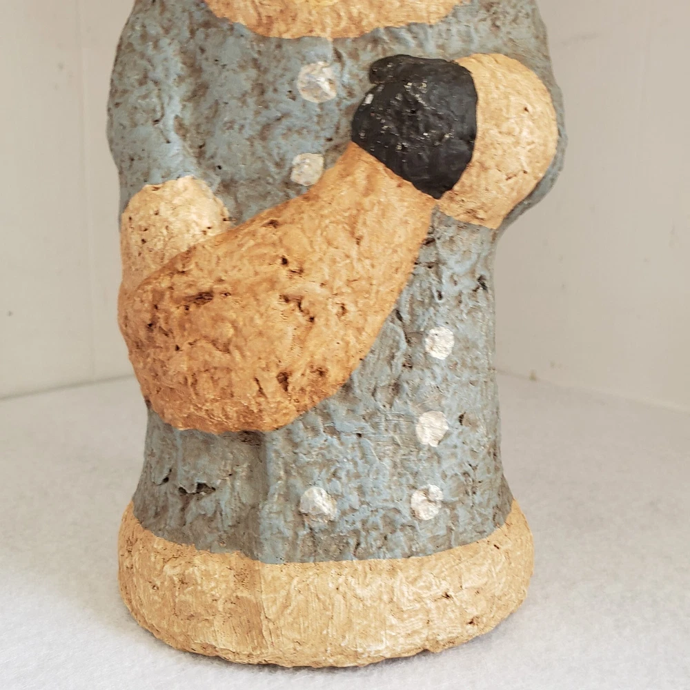 Pulp / Paper Mache Old World Santa with toy bag - Blue Coat Handmade and hand painted Height 8.25: Weight 8 oz. Stored in a smoke and pet free home Inside storage Add a touch of old-world charm to your Christmas decorations with this handmade figurine of Santa Claus carrying a toy bag. The figurine is finely crafted from pulp paper mache, with a textured 3D effect and hand-painted finish in beautiful shades of blue. Measuring 8.5 inches in height and weighing 6 ounces, this medium-sized figurine is perfect for adults looking to add a festive touch to their home decor. The Santa Claus figurine is an original piece of folk art, with a unique design that captures the spirit of the holiday season. The figurine is perfect for collectors of holiday and seasonal decor, and would make a great gift for anyone who loves Santa Claus or handmade crafts. With its classic style and beautiful finish, this figurine is sure to become a cherished part of your holiday decor for years to come.