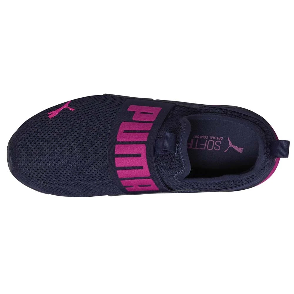 Axelion Slip On Wide Training Shoes Product Details Knit upper Slip on entry EVA midsole Rubber outsole Axelion is here to up your game. The breathable perforated upper combines with a TPU shank in the midfoot and EVA heel pod for stable cushioning and support through movements. A true gamechanger for comfortable everyday training shoes. Additional Details Color: Blue Occasion: Casual Gender: Womens Age: Adult Brand: Puma