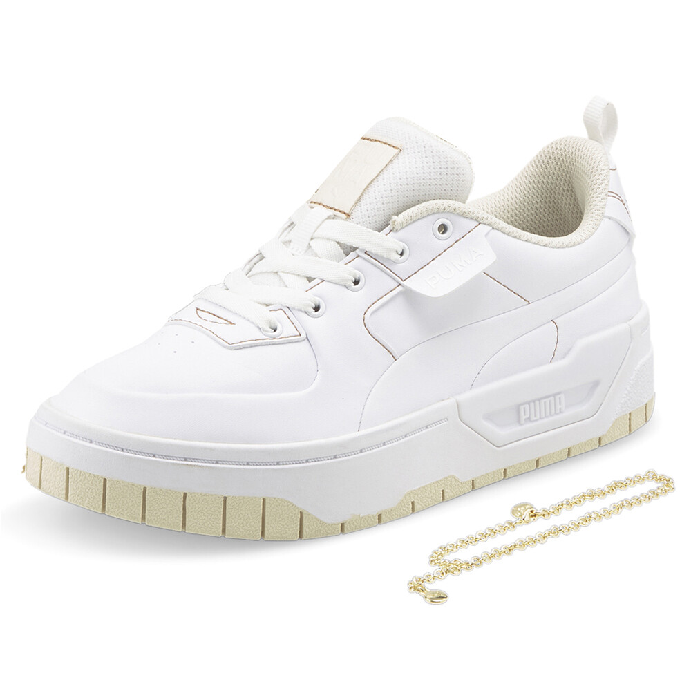 Cali Dream Infuse Lace Up Sneakers Product Details Vegan leather upper Lace up closure Rubber midsole Rubber outsole Laid-back beach fashion gets a modern boost of design and innovation that's perfect for fresh, whimsical style in this reimagining of the iconic PUMA Cali silhouette. The Cali Dream Infuse Sneakers pare down this design to its absolute essentials, delivering a clean, minimalist silhouette that celebrates confidence in natural beauty. Additional Details Color: White Occasion: Casual Gender: Womens Age: Adult Brand: Puma