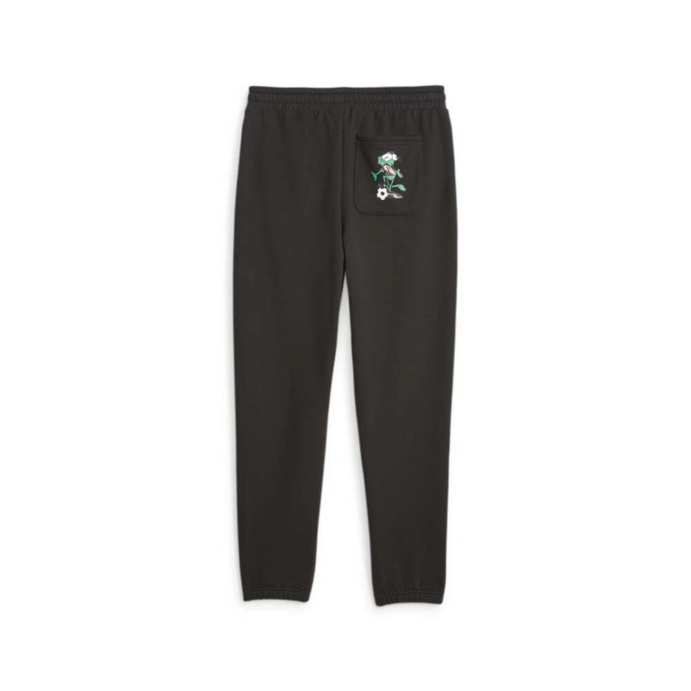 Classics Super Sweatpants Product Details Regular Fit Elastic waistband with external drawcord for customized comfort 2 front pockets 1 Back pocket Graphic print on the front and back Depicting PUMA's iconic feline superhero from '70s comic book series, these sweatpants feature standout graphics on the front hip and back pocket. Wear them alone or pair them with the matching hoodie to channel Super PUMA head-to-toe. Additional Details Color: Black Occasion: Casual Gender: Mens Age: Adult Brand: Puma