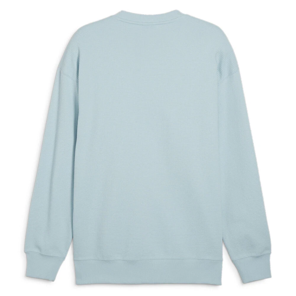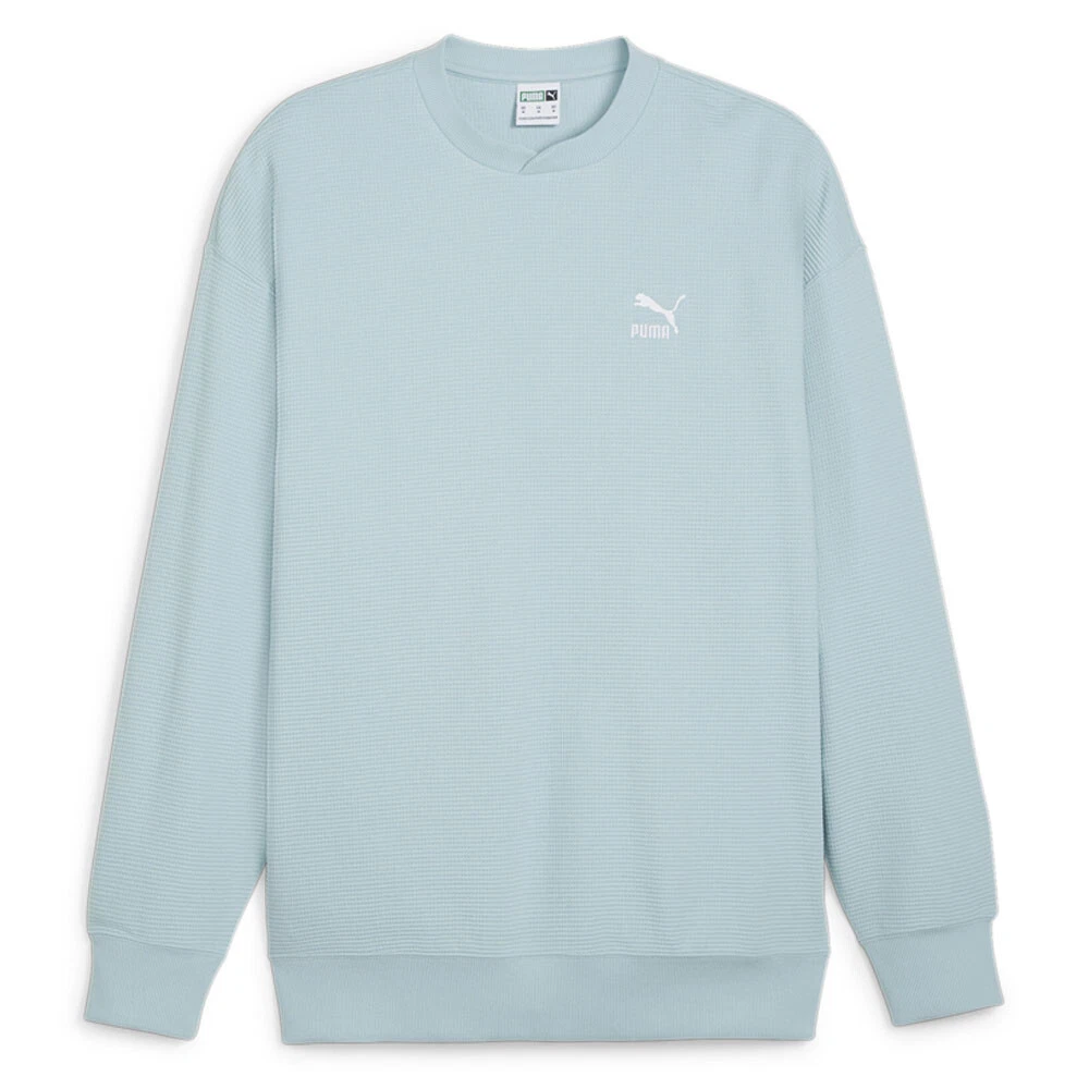 Classics Waffle Crew Neck Sweatshirt Product Details Relaxed fit 290 grams per square meter, double face jacquard knit Crew neck Rib cuffs and hem Overlapping rib crew neck as a design element Classics are called classics for a reason. It's because, like this Waffle Sweatshirt, they're timeless. This relaxed-fit men's sweatshirt has an embroidered logo, is made from a brushed, double-face jacquard for that textured look, and an overlapping ribbed crew neck. Additional Details Color: Blue Occasion: Casual Gender: Mens Age: Adult Brand: Puma