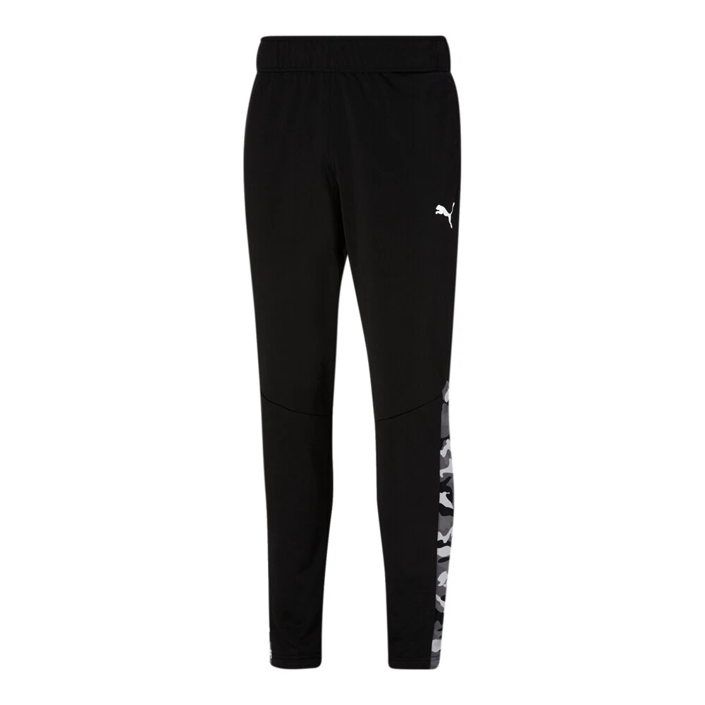 Contrast Camo Blocked Pants Product Details Elastic waistband Side pockets Puma logo Regular fit Puma's kept it simple for the Contrast Pants. Made with moisture wicking fabric, the Contrast Pants help keep you dry and comfortable. With a stripe side panel in contrast colors and the perfect depth front hand pockets, you be equal parts cool and comfortable. Additional Details Color: Black Occasion: Casual Gender: Mens Age: Adult Brand: Puma