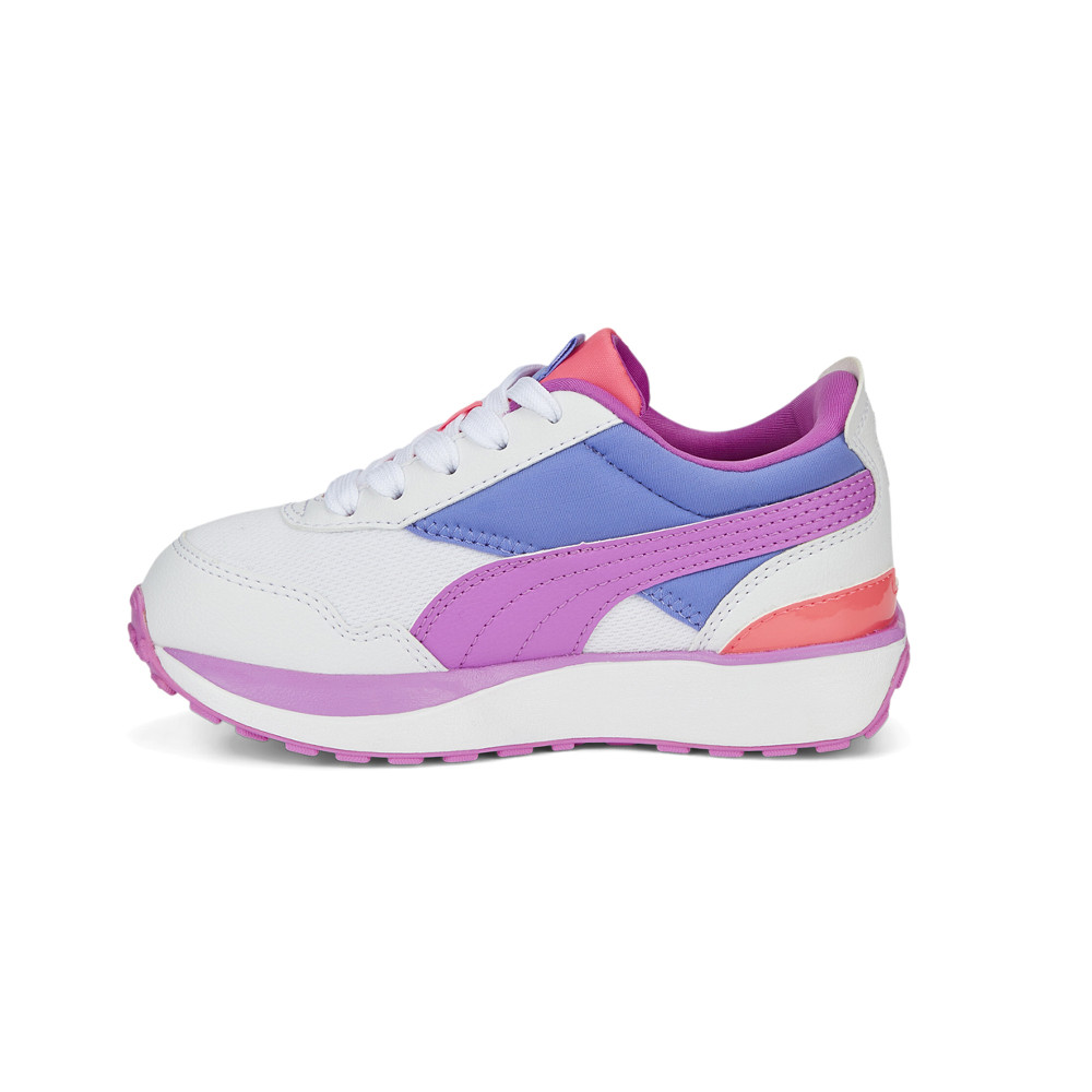 Cruise Rider Glitzy Glitter Lace Up Sneakers (Little Kid-Big Kid) Product Details Nylon upper with metallic details Lace up closure CMEVA midsole with TPU piece Rubber outsole Sequin PUMA Formstrip with color-shifting effect on the lateral side Drawing inspiration from vintage cars, our Cruise Rider is known for its stacked sole, sporty lines, and urban attitude. For this Glitzy edition, we've packed it full of playful textures and glam embellishments. Shiny TPU heel piece? Check. Metallic PUMA branding? Of course. Sequin Formstrip? You bet. And with vibrant colorblocking to boot, these kicks pop like no other. Additional Details Color: Pink, White Occasion: Casual Gender: Girls Age: Youth Brand: Puma