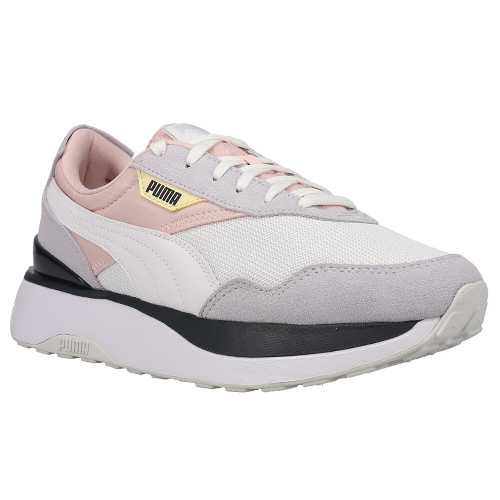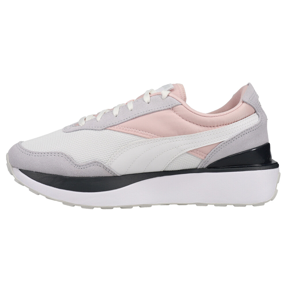 Cruise Rider Silk Road Lace Up Sneakers Product Details Mesh upper with suede and leather overlays Lace up closure Platform foam midsole for soft-cushioning Non-marking rubber outsole With fun colorblocking, a versatile material blend, and a stacked outsole, the PUMA Cruise Rider Silk Road stands out. Additional Details Color: Grey, Pink, White Occasion: Casual Gender: Womens Age: Adult Brand: Puma