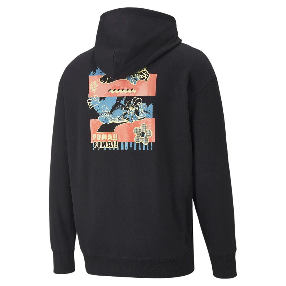 Downtown Graphic Pullover Hoodie Product Details Pullover entry Hood with drawstring Kangaroo pockets Graphic logo 100% cotton This Downtown hoodie is an eclectic take on a classic comfort. It's easy to combine and even easier to use. It features a bold graphic print that adds an eye-catching touch to any outfit. Featuring a kangaroo pocket, drawstring hood and ribbed cuffs and hem to complete the look. Additional Details Color: Black Occasion: Casual Gender: Mens Age: Adult Brand: Puma