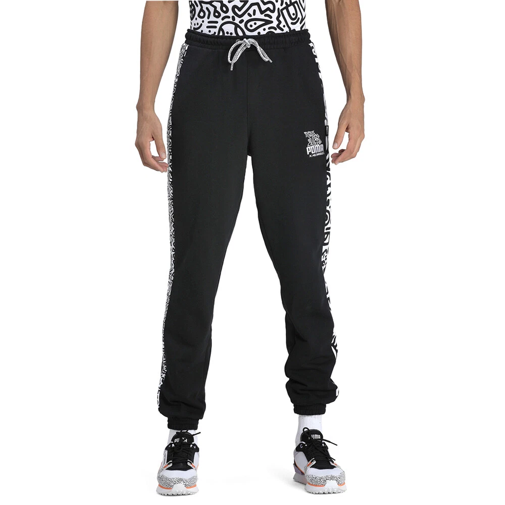 Drawstring Sweatpants X Mr Doodle Product Details Regular fit Front slip pockets Elastic waistband with drawcord for customized comfort Elastic cuffs 100% Cotton PUMA x MR DOODLE Pants are a combination of two worlds. "Sporty" drawings from DOODLE, inspired by cool London graffiti are the main decoration of this model. Additional Details Color: Black Occasion: Casual Gender: Mens Age: Adult Brand: Puma