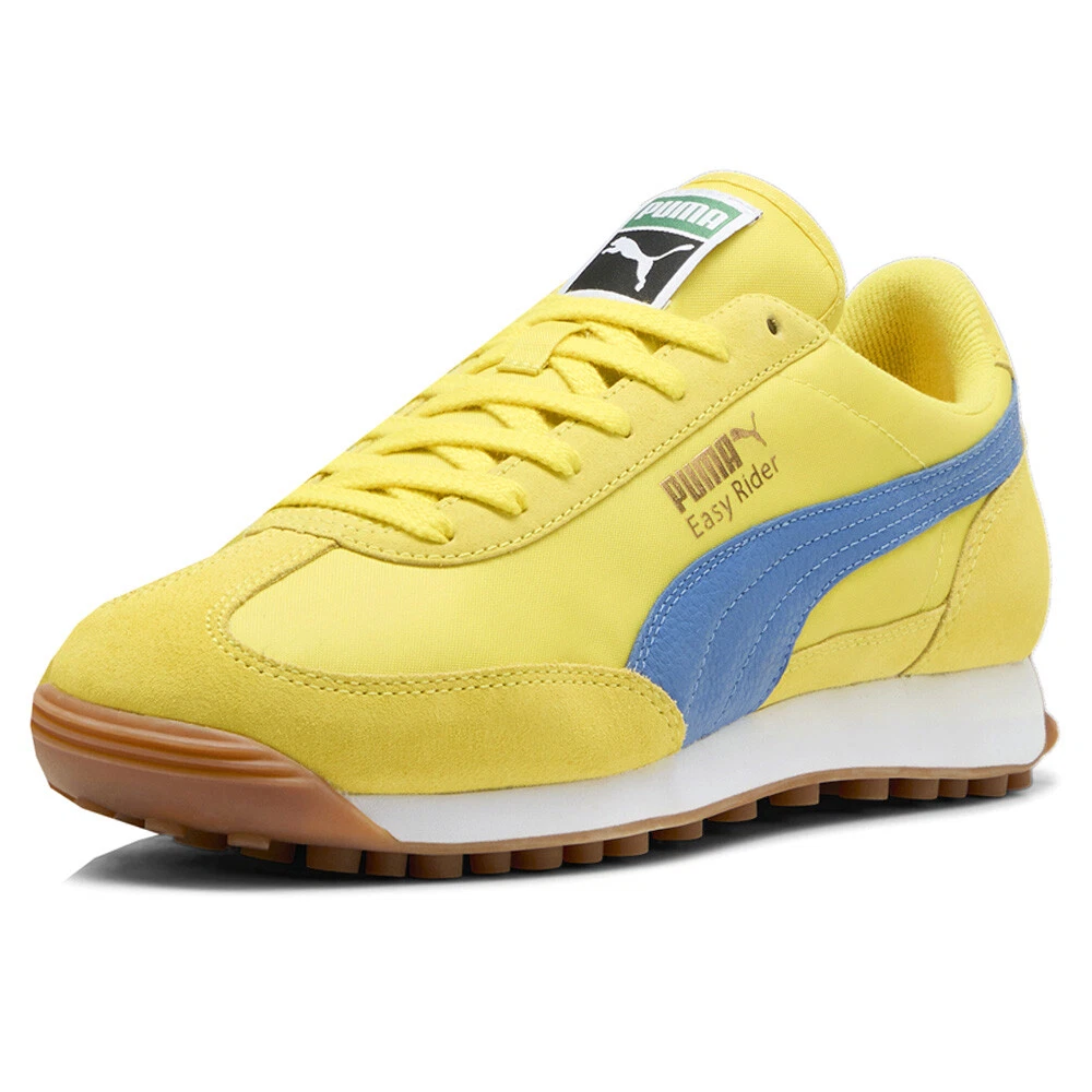 Easy Rider Vintage Lace Up Sneakers Product Details Nylon base Suede leather quarter and medial overlays Suede leather toe and heel overlays Suede leather eyestay Textile tongue with woven Puma branding label The Puma Easy Rider was born in the late ‘70s, when running made its move from the track to the streets. Today it's back with its classic slim profile and vintage vibes intact. This version, featuring a nylon base and suede leather overlays, is sure to become your go-to for bringing a touch of easy, retro-style to everyday looks. Additional Details Color: Yellow Occasion: Casual Gender: Mens Age: Adult Brand: Puma