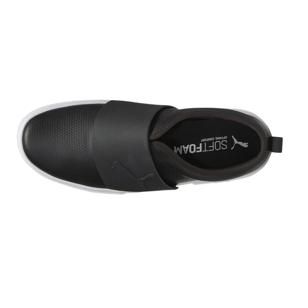El Rey II Perforated Slip On Sneakers Product Details Perforated leather upper Slip-on construction Thermoplastic Urethane strap The El Rey II SlipOn Perf L is a reissue of a skate inspired PUMA classic featuring a cupsole tooling and a slipon upper construction. A perforated leather upper is paired with a durable Thermoplastic Urethane strap with cat branding goes across the vamp. The SoftFoam+ sockliner provides superior cushioning and optimal comfort for every step of your day. Additional Details Color: Black Occasion: Casual Gender: Mens Age: Adult Brand: Puma