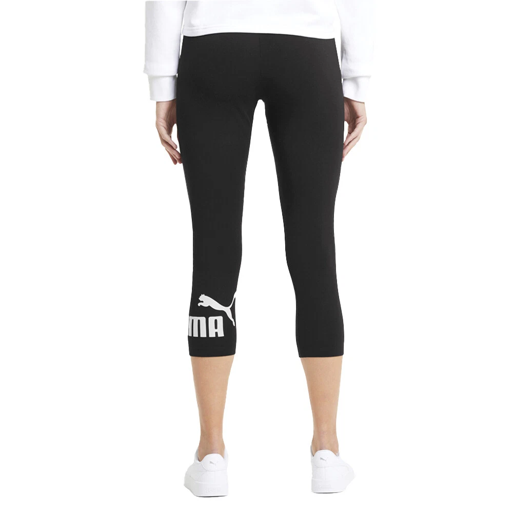 Essentials 3/4 Logo Leggings Product Details 3/4 Length Elastic waistband Tight fit 95% cotton, 5% elastane Put on essential PUMA style with these cool cropped leggings, made from sustainably-sourced cotton, with bold PUMA No.1 Logo branding at the leg. Additional Details Color: Black Occasion: Casual Gender: Womens Age: Adult Brand: Puma