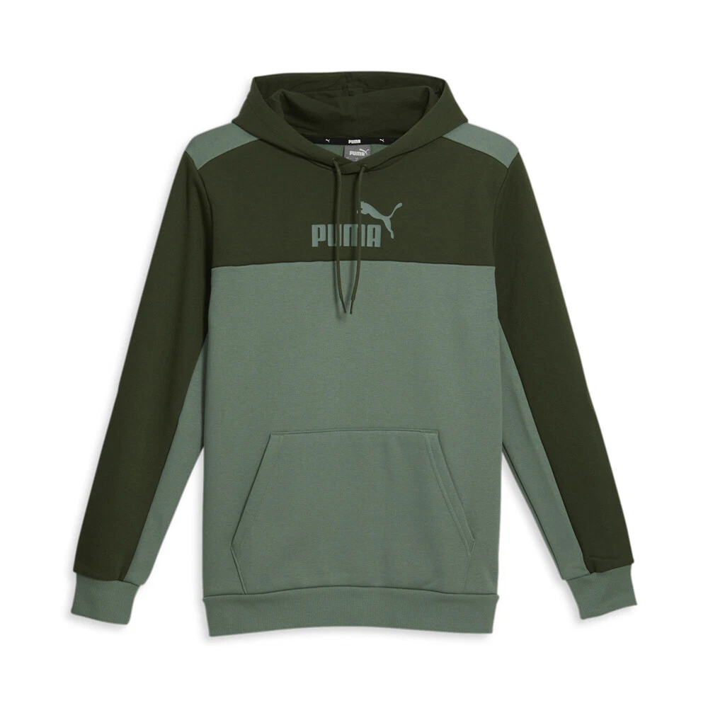 Essentials Block Pullover Hoodie Product Details Regular fit Kangaroo pockets 66% cotton 34% polyester Comfortbale. Stylish. All the makings of a wardrobe staple. This color-block hoodie is the perfect way to round out a laid-back look. Additional Details Color: Green Occasion: Casual Gender: Mens Age: Adult Brand: Puma