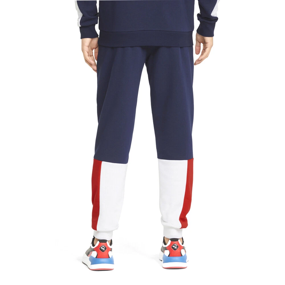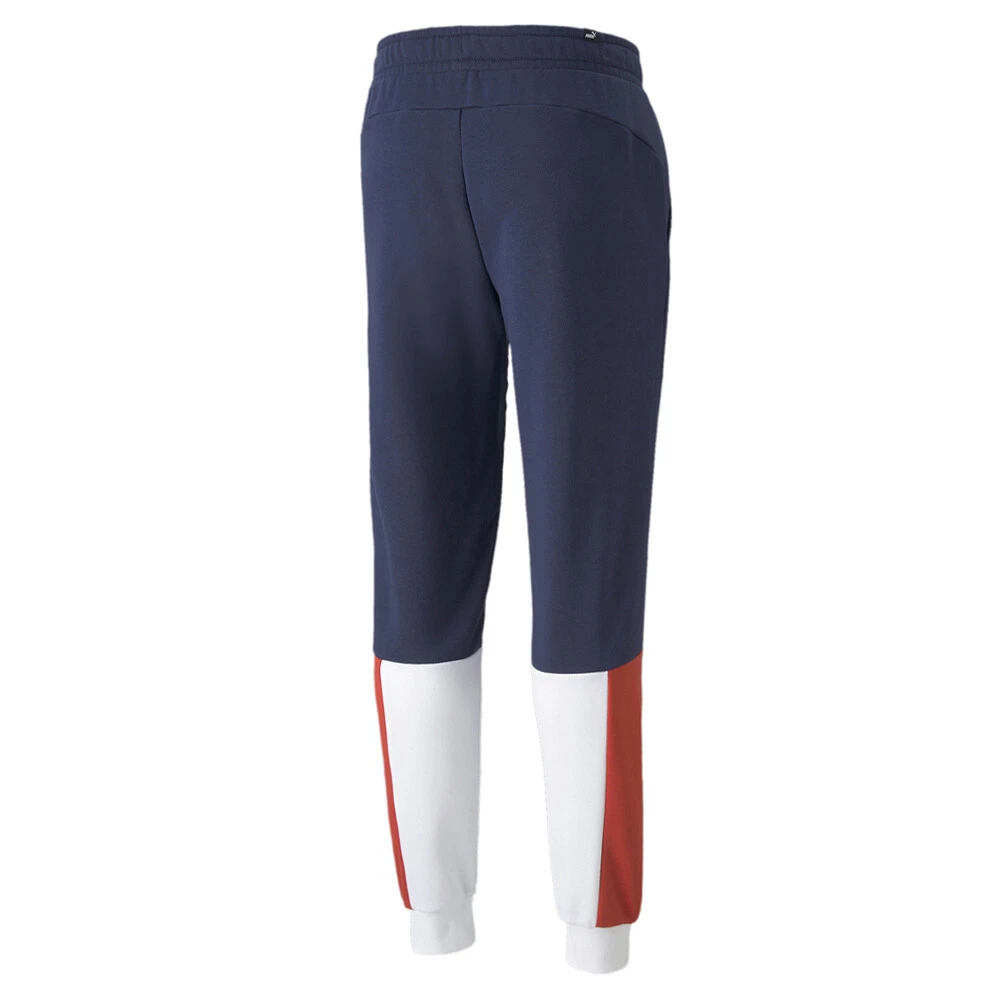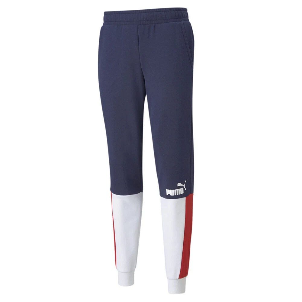 Essentials+ Block Sweatpants Product Details Slim fit Full length elasticated waistband Ribbed cuffs 68% cotton, 32% polyester A wardrobe essential. Hit the streets in style in these cool yet comfy sweats with bold color-blocking and classic PUMA branding for a laid-back sporty finish. Additional Details Color: Blue Occasion: Casual Gender: Mens Age: Adult Brand: Puma
