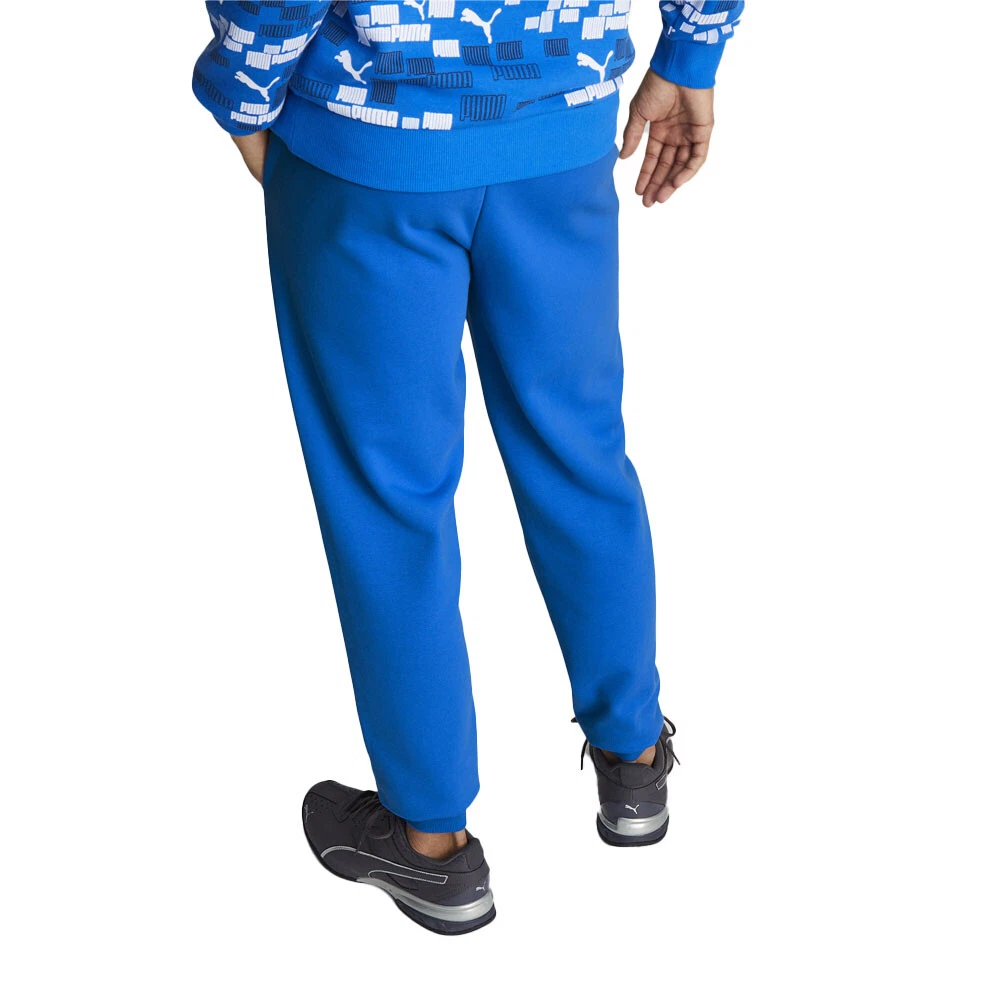 Essentials Embroidery Logo Sweatpants Product Details Regular fit Elastic waistband with internal drawcords for customized comfort Side pockets for a convenient storage solution PUMA branding details 66% cotton, 34% recycled polyester Beat the chill in the PUMA Men's Essential+ Embroidery Logo Fleece Sweatpants. The cotton-polyester fleece blend feels soft and warm for day-long comfort, while the adjustable waistband offers a secure fit. The ribbed cuffs and embroidered graphic elevate your look. Additional Details Color: Blue Occasion: Casual Gender: Mens Age: Adult Brand: Puma