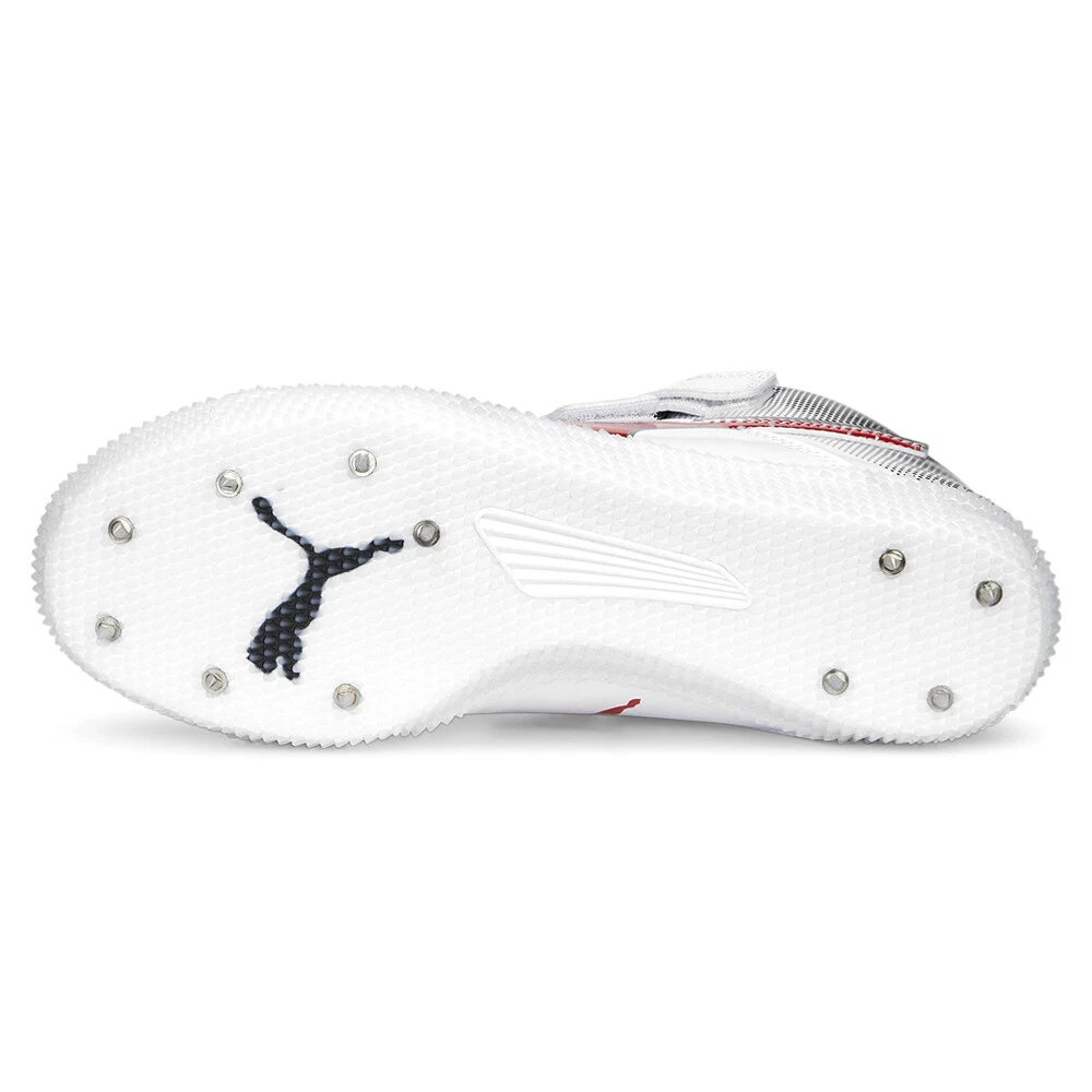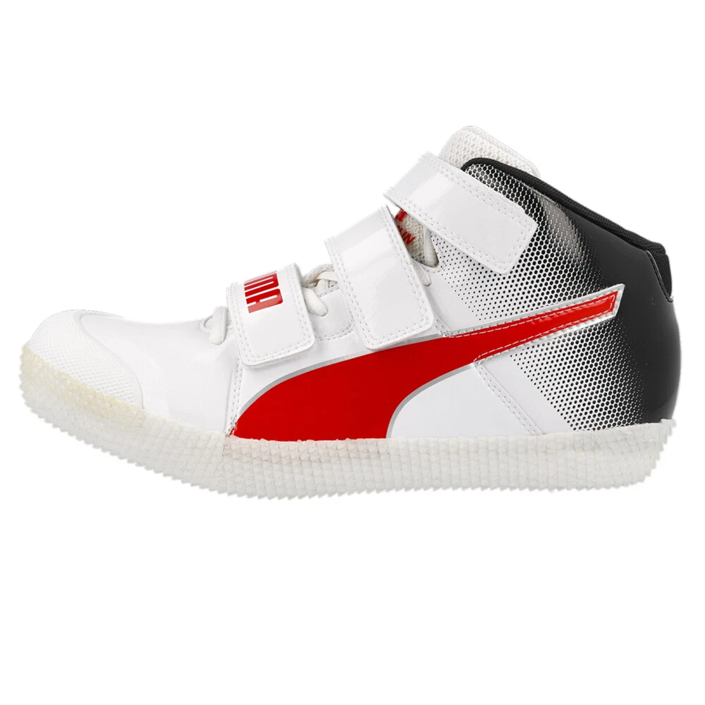 Evospeed Javelin 3 Track & Field Shoes Product Details Low boot Aerodynamic microfibre upper ‘Shark skin’ outsole Eco Ortholite sockliner 11-spike full-length internal Pebax plate Launch your javelin unforeseen distances thanks to the evoSPEED Javelin 3. Here, the 11-spike pin Pebax promises aggressive grip and traction for maximum speed and propulsion. The upper midfoot strap locks the foot securely and allows for a more personalized fit. And the full-length shark-skin outsole allows for peak traction. The shoe is topped off with a strong, aerodynamic upper wraps comfortably so you can focus on finishing first. Additional Details Color: White Occasion: Casual Gender: Mens Age: Adult Brand: Puma