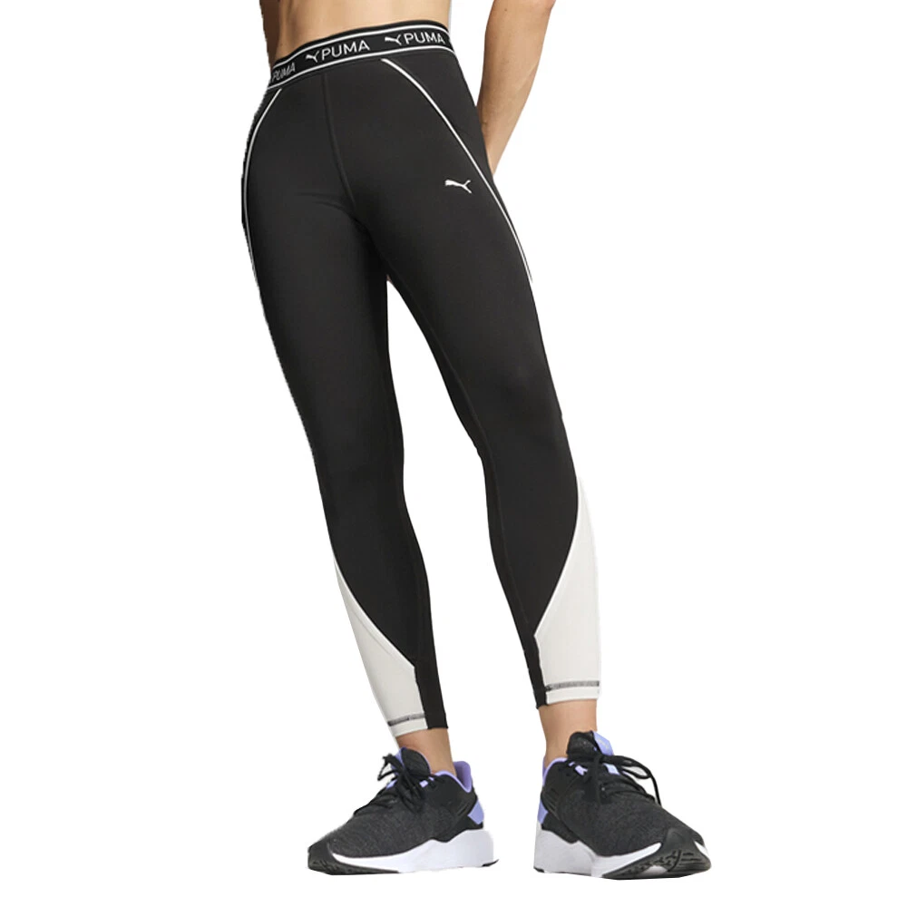 Fit Train Strong 7/8 Athletic Leggings Product Details High cut elastic waistband Forward-facing seams 7/8 Length Duochrome colourblock 89% polyester, 11% elastane Dial up your workout with these colourblock tights. We've taken this regular silhouette and added some aesthetic details to it to give you the confidence we all need when we hit the gym. Get ready to look and feel your best in this pair of sweat-wicking tights. Additional Details Color: Black Occasion: Casual Gender: Womens Age: Adult Brand: Puma