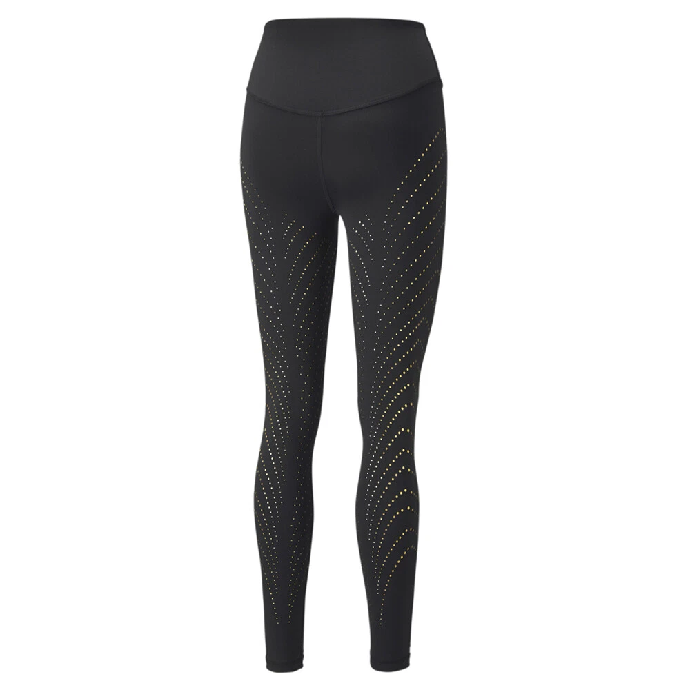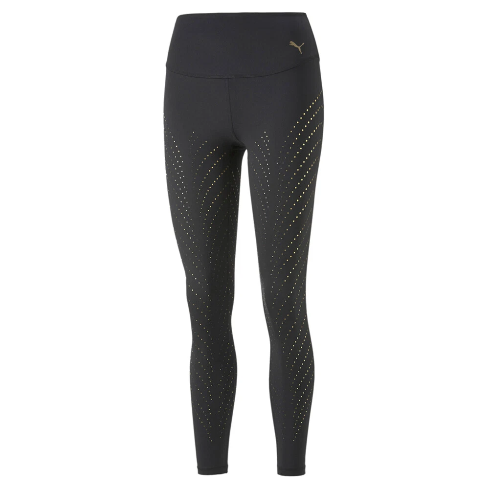 Forever Luxe Ellavate Graphic High Waisted 7/8 Athletic Leggings Product Details Curved back waistband for a flattering, shape-enhancing fit Centre-back pocket that wraps around the back of the waistband 7/8 length 76% Polyester, 24% Elastane. It's your time to shine. For those who love a little glamour, the FOREVER Luxe is a dazzling variation on the classic casual leggings, with a metallic all-over print that's specially crafted to create flattering lines. The quick-drying ELLAVATE fabric and moisture-wicking finish make them an ideal workout companion. Additional Details Color: Black Occasion: Casual Gender: Womens Age: Adult Brand: Puma