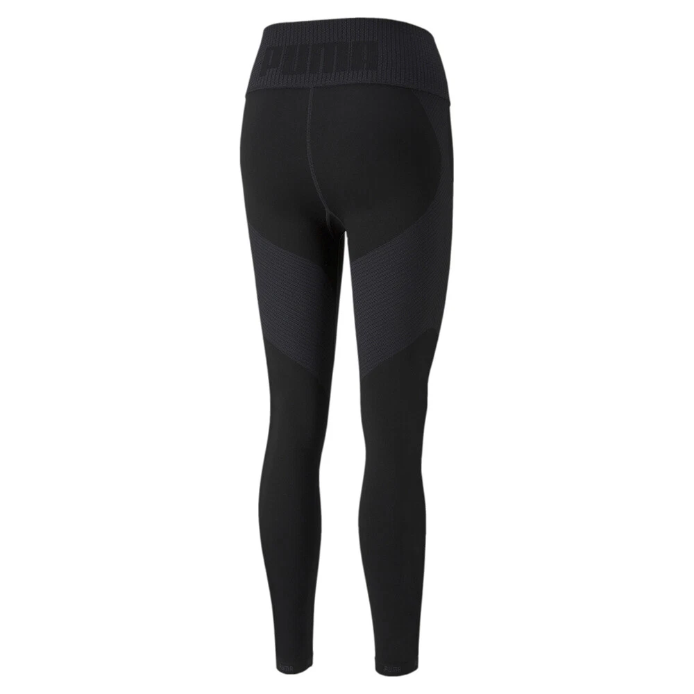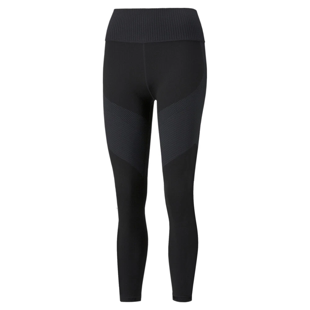 FormKnit High Waist 7/8 Training Leggings Product Details Tight fit Engineered two-tone jacquard knit for superb support Cut-and-sew high waistband PUMA Wordmark on waistband and hems 63% polyester, 23% nylon, 14% elastane No seams, all performance: The FormKnit Seamless High Waist 7/8 Training Leggings are made of precisely engineered two-tone jacquard knit structures to create a fit that is exceptionally close to the body while being a pleasure to wear. The cut-and-sew high waistband creates a form-fitting silhouette, and the 7/8 inseam make them the ideal length if you're looking to make a fashion-forward statement at the gym. Additional Details Color: Black Occasion: Casual Gender: Womens Age: Adult Brand: Puma