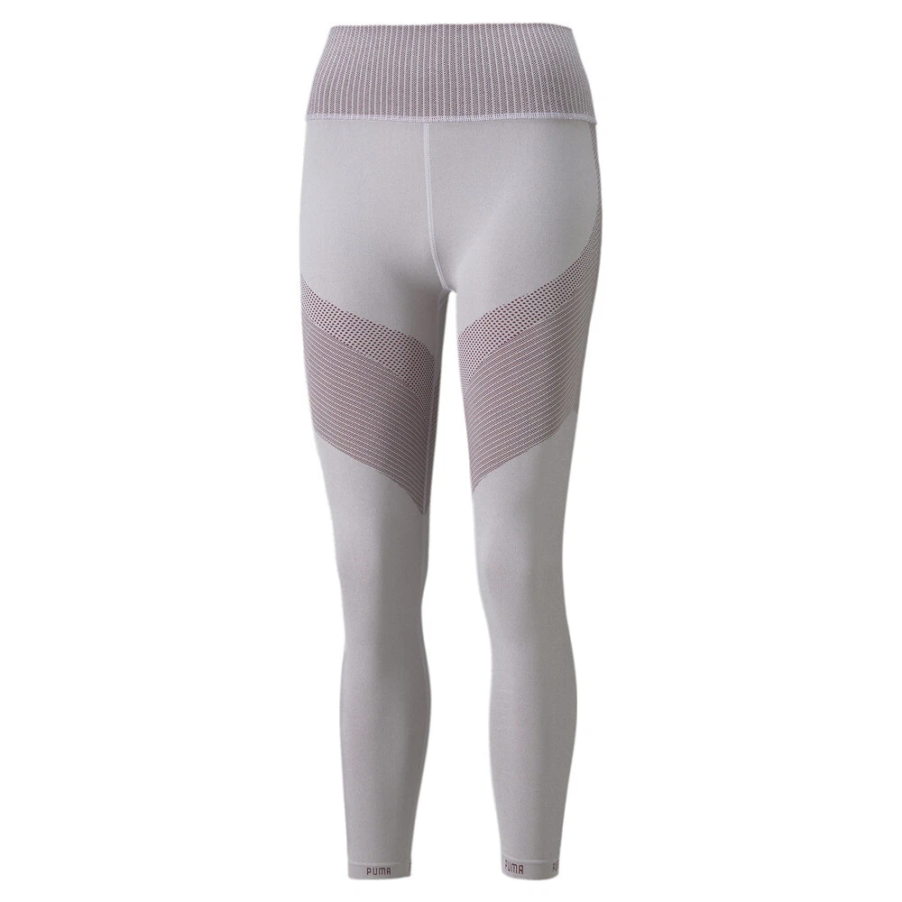 FormKnit Seamless High Waisted 7/8 Training Athletic Leggings Product Details Inseam 7/8 for a cut along the calf line Cut-and-sew high waistband Two-tone jacquard knit for superior support 63% polyester, 23% nylon, 14% elastane No seams, all performance: The FormKnit Seamless High Waist 7/8 Training Leggings are made of precisely engineered two-tone jacquard knit structures to create a fit that is exceptionally close to the body while being a pleasure to wear! Additional Details Color: Purple Occasion: Casual Gender: Womens Age: Adult Brand: Puma