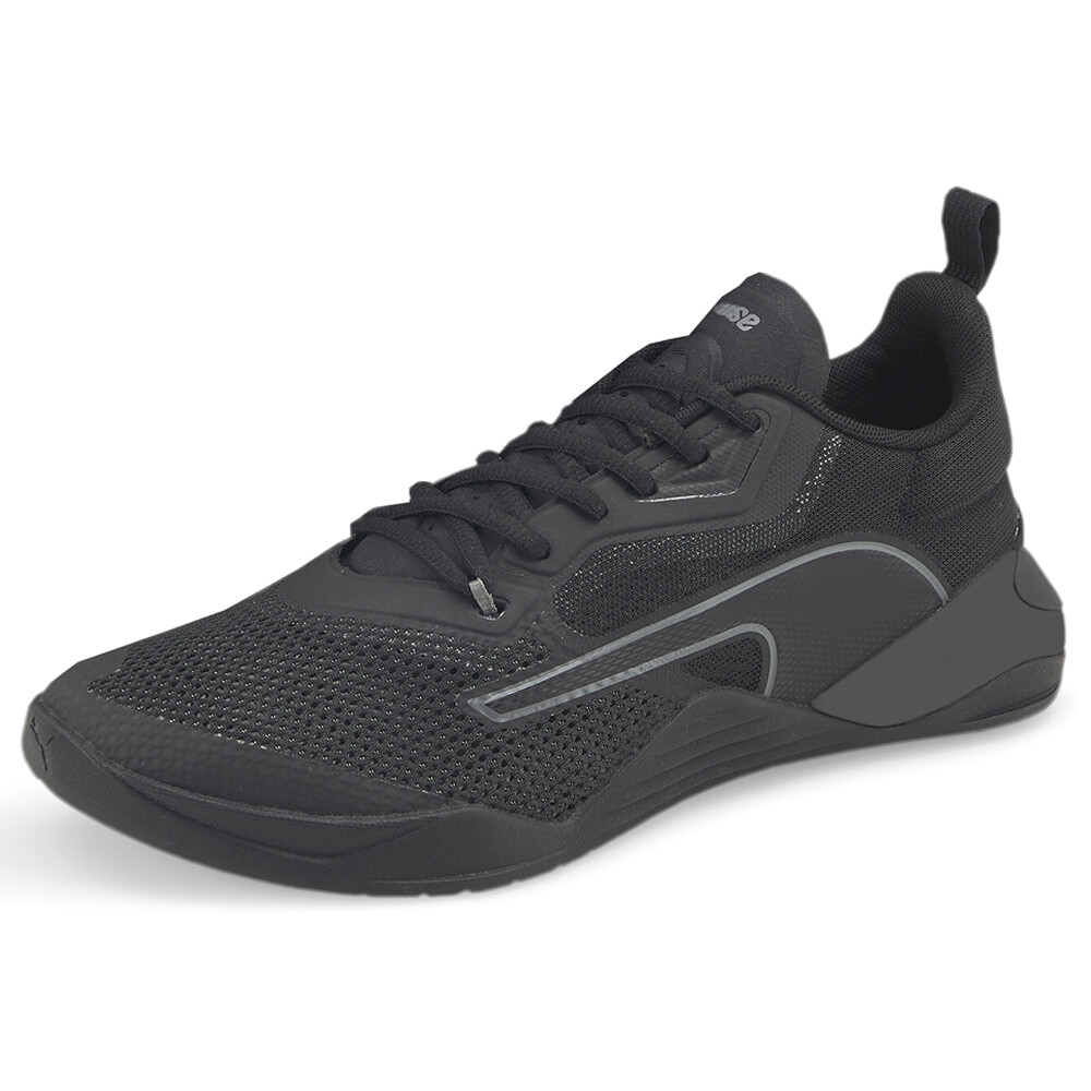 Fuse 2.0 Training Shoes Product Details Textile upper Thermoplastic polyurethane heel clip for enhanced heel support Profoam Ethylene-vinyl acetate midsole with internal stability Fuseflex vertical flex grooves on outsole provide improved metatarsal foot splay Pumagrip rubber outsole for?maximum traction and durability during training movements We worked with professional athletes to amplify three key training attributes—stability, fit, and traction. The Fuse 2.0 features increased rubber for enhanced stability, including higher sidewall coverage to ensure traction and grip. The streamlined upper construction provides durability for rope climbs, while a lightweight thermoplastic polyurethane heel clip is designed for handstand push-ups. And all this innovation comes in one sleek package to help you reach your ultimate training potential. Additional Details Color: Black Occasion: Casual Gender: Mens Age: Adult Brand: Puma